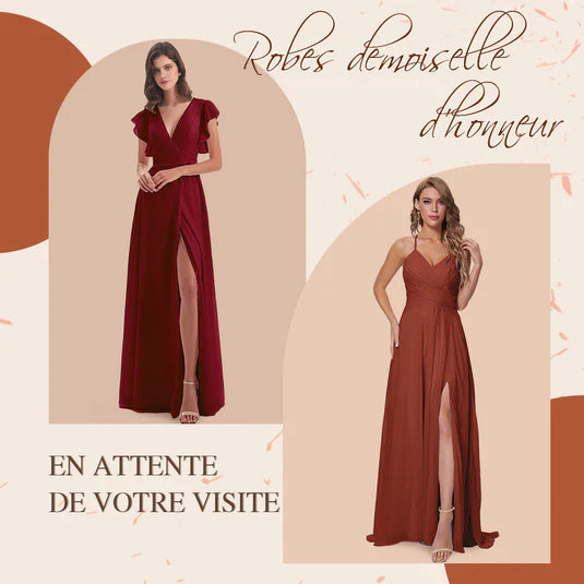 Harmony Bretelles Spaghetti Fendue Mousseline Robes Demoiselle d'Honneur