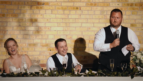 La deuxième chose est de le rendre court et doux. Je dirais que ne prenez pas plus de trois à quatre minutes pour votre toast, je dirais encore moins si le couple a choisi plus de quatre personnes pour porter un toast. À ce stade, vous voudrez vous en tenir à environ deux minutes au maximum, mais je dirais ne pas dépasser quatre minutes. J'ai eu ma juste part de toasts qui ont duré quatre cinq six sept huit minutes, tout le monde dans la salle est tellement fatigué d'entendre ce toast, à ce moment-là, vous vous promenez que vous n'ajoutez pas vraiment plus. Donc, plus court est mieux, je dirais que la qualité sur la quantité chaque jour, et cela s'applique à tant de choses dans la vie, alors soyez bref et doux, assurez-vous que vous ne bourdonnez pas encore et encore, assurez-vous que quelqu'un le relit pour toi.