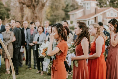 La rouille doit être l'une de mes couleurs préférées absolues que nous voyons entrer dans la tendance en 2021. J'aime une couleur plus sombre lors d'un mariage. Je sais que ce n'est pas la tasse de thé de tout le monde mais pour moi c'est comme le paradis. Donc, j'adore ça, comme ce ton de cuivre rouillé devient tendance. La rouille est une couleur parfaite pour tous les mariages de fin d'été ou d'automne. Il est préférable de l'utiliser pour les tenues de demoiselles d'honneur, la nappe ou le linge de table ainsi que la signalisation. Nous voyons de la rouille apparaître dans de nombreuses vibrations de terre cuite. Il y a beaucoup d'ambiances du désert qui sont à la mode en ce moment et la rouille est un aspect énorme de ces conceptions. J'adore les robes de demoiselle d'honneur de couleur rouille, en particulier si elles ont une texture plus comme un velours ou un satin. Je pense que ceux-ci vont également continuer à être très très tendance en 2021, en particulier le velours satiné a été très populaire ces dernières années. Cette couleur convient mieux aux mariages vintage, bohèmes ou rustiques. Alors se reposer dans une salle de bal traditionnelle n'est peut-être pas à son meilleur, mais la rouille comme un entrepôt est comme le paradis.