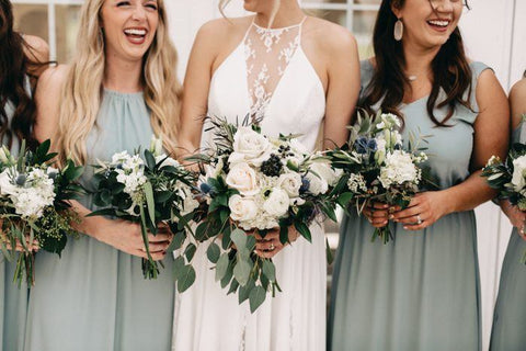 La sauge est si merveilleuse parce que c'est un joli ton terreux que nous recherchons à nouveau une belle couleur sourde ou poussiéreuse. Donc, il ne se sent pas super pigmenté contre un mariage traditionnellement blanc. Je pense que cela s'intègre également très bien dans le thème de la verdure et du blanc que nous voyons se dérouler depuis ces dernières années. Je pense qu'ajouter de la sauge à ce style de mariage serait un très bon moyen de boucler la boucle du design. Cette couleur fonctionne mieux comme robe de demoiselle d'honneur. Vous pouvez également l'utiliser pour les serviettes de table et, naturellement, il ressortira de vos fleurs, en particulier pour utiliser de la verdure comme l'eucalyptus dollar en argent. Lorsque vous recherchez une sauge, assurez-vous qu'elle est plus du côté gris du vert que du côté jaune du vert, en particulier dans les robes de demoiselle d'honneur. Ils peuvent sortir plus de citron vert au lieu de ressembler à une couleur argentée à l'eucalyptus. Cette couleur fonctionnerait parfaitement avec les mariages bohèmes, de jardin ou rustiques. Sans dire que vous ne pourriez pas l'utiliser dans d'autres styles, mais ce sont les styles qui fonctionnent vraiment de manière transparente.