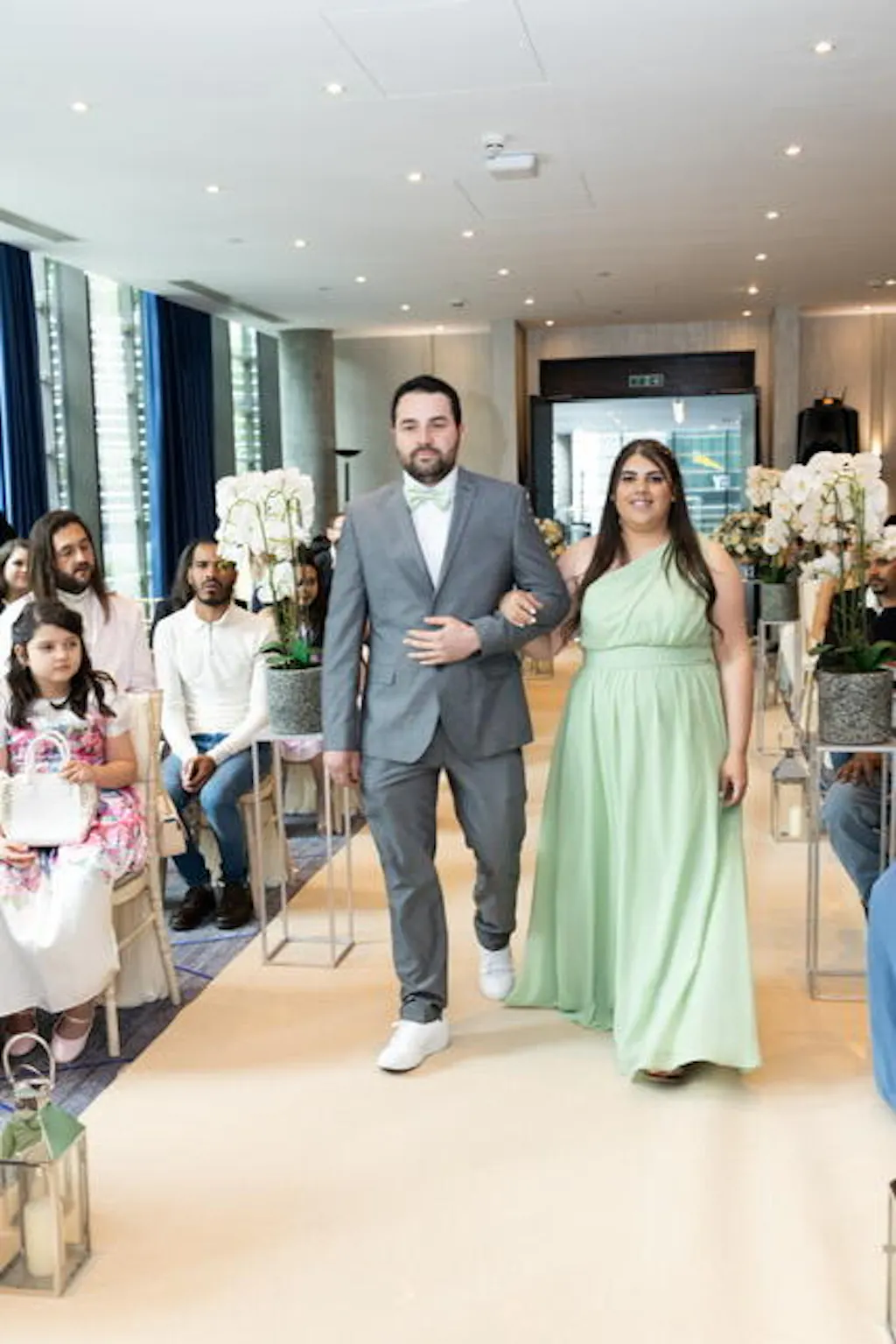 • A commencé au creux espacez entre les clavicules et tirez le ruban vers le bas jusqu'à l'endroit où l'ourlet de votre robe doit toucher (y compris la traîne s'il y en a une)