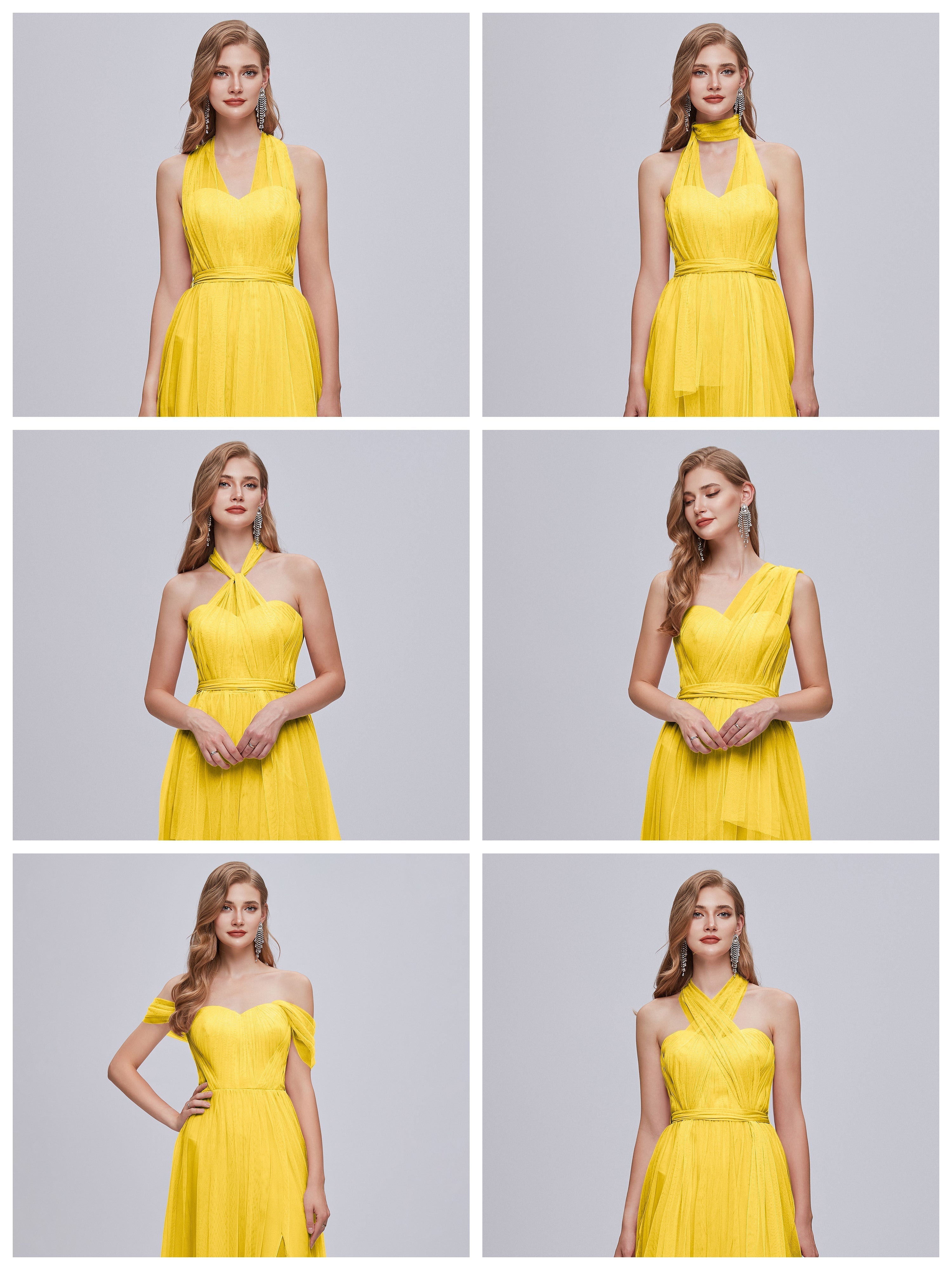 Robe De Demoiselle D'Honneur Souci Convertible Fendue Tulle Robe De Demoiselle D'Honneur