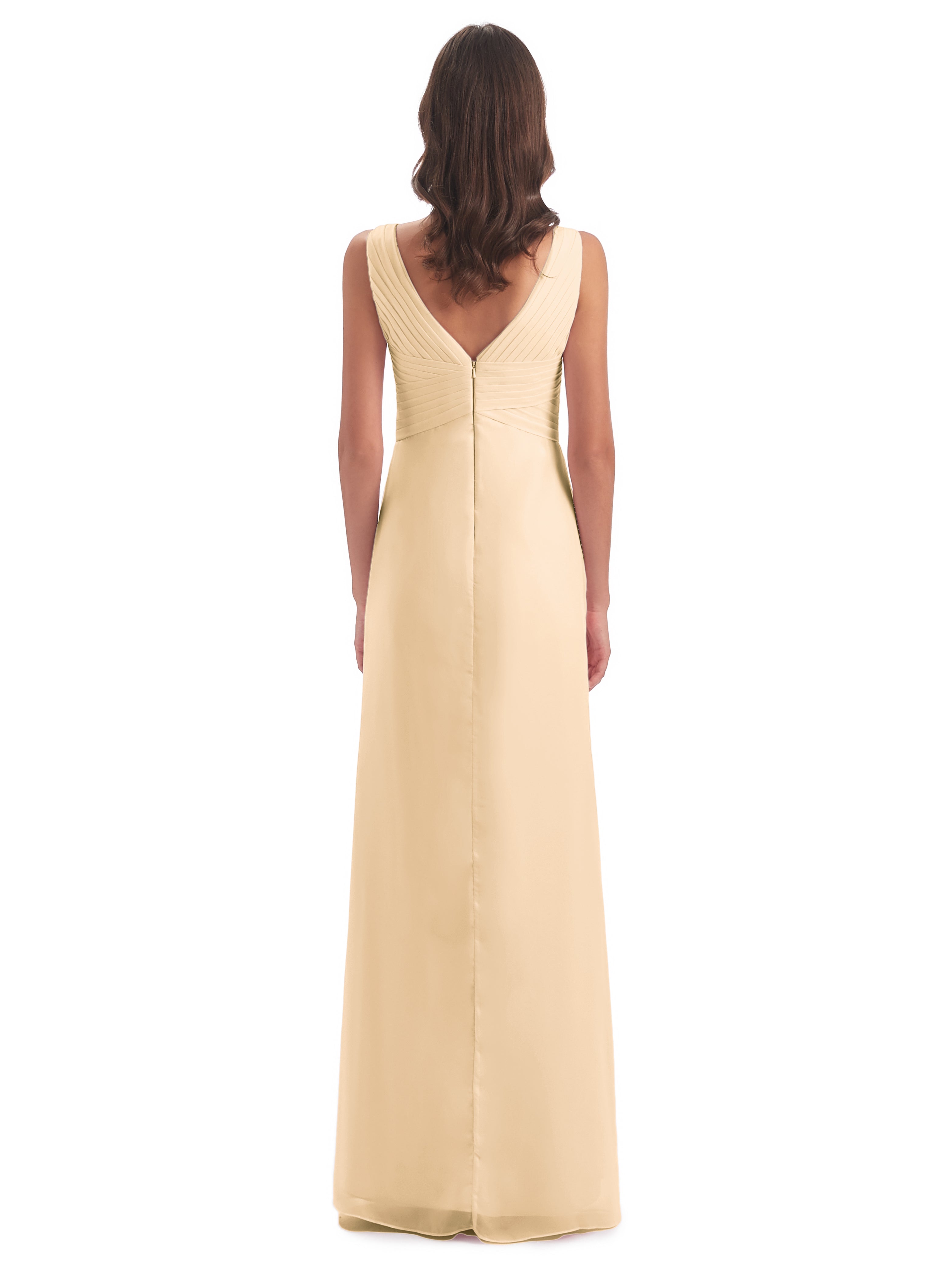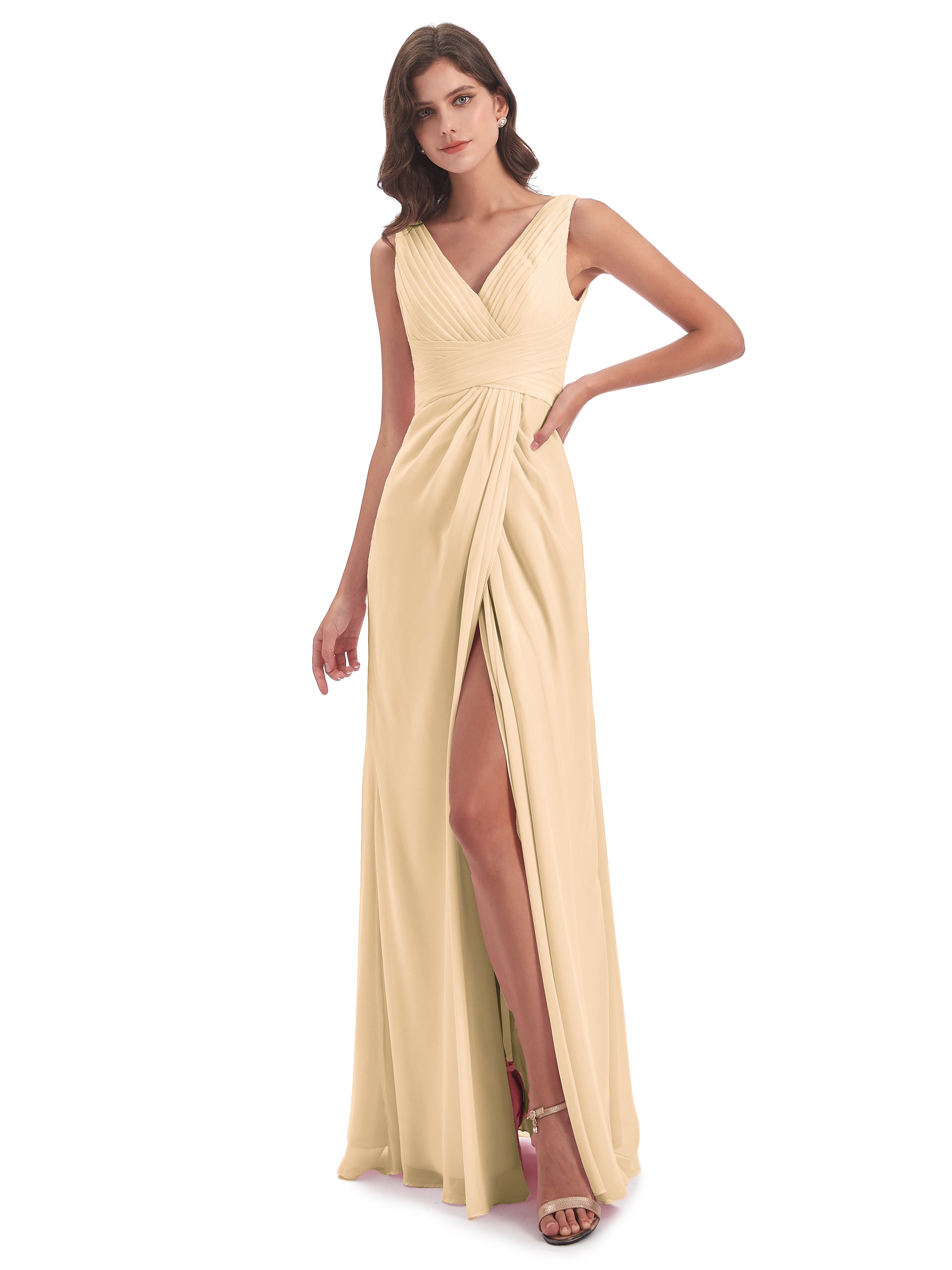 Robe Peche Demoiselle D Honneur Fendue Devant Mousseline Longue Robes Demoiselle D'Honneur