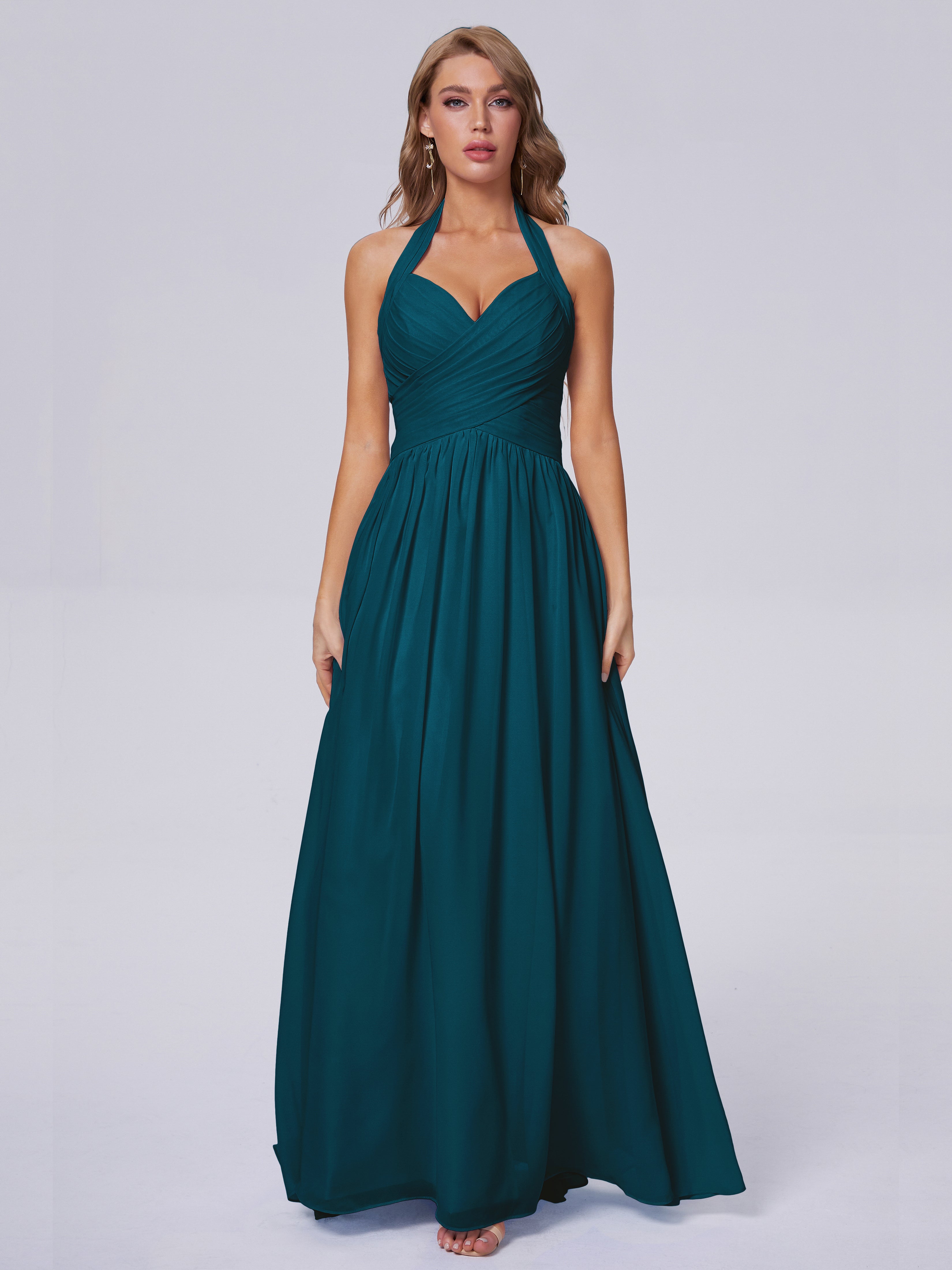 Robes De Demoiselle D'Honneur Bleu Encre Superbe Licou Mousseline Robes Demoiselle D'Honneur
