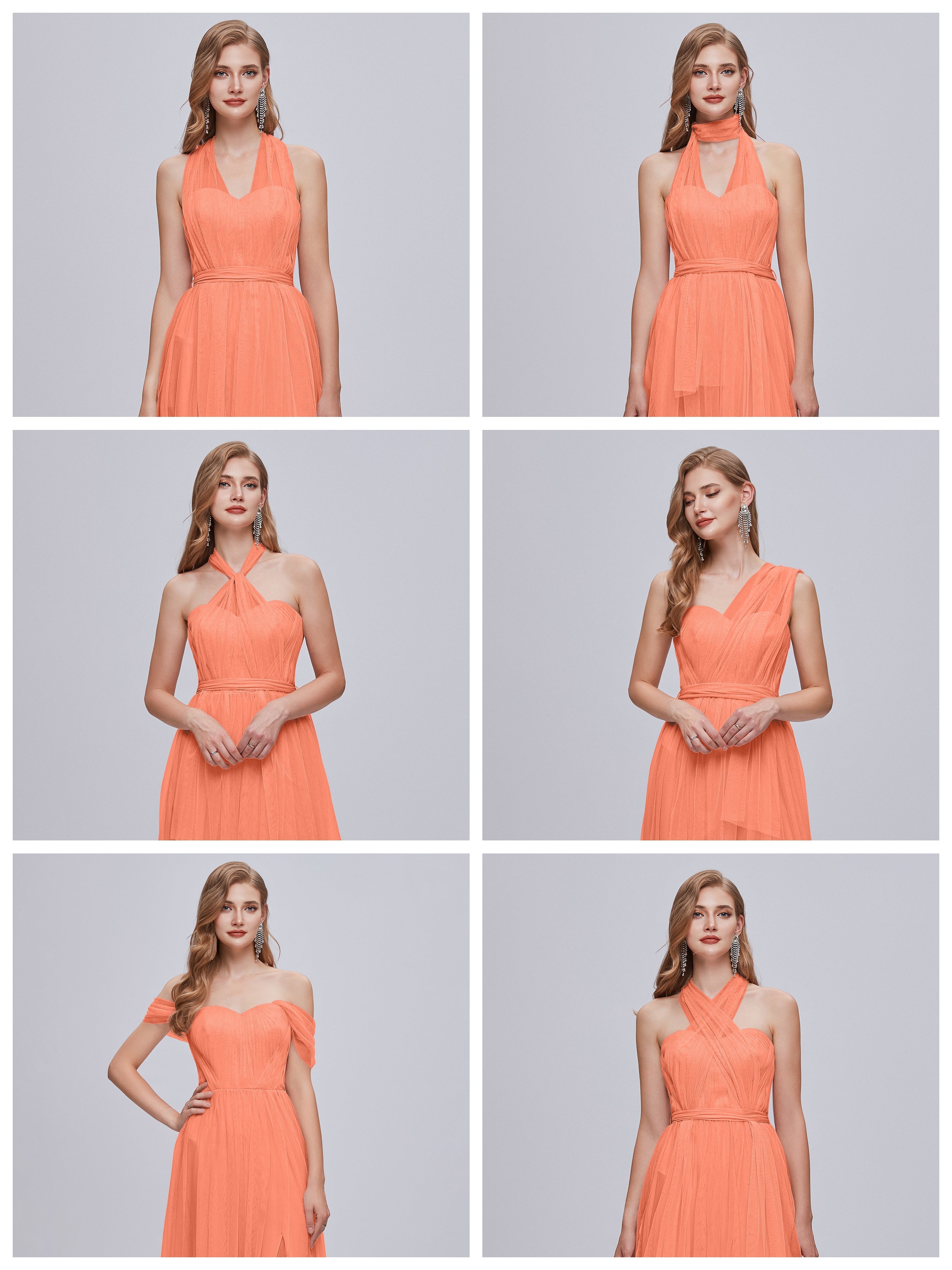 Robes De Demoiselle D'Honneur Coucher De Soleil Convertible Fendue Tulle Robe De Demoiselle D'Honneur