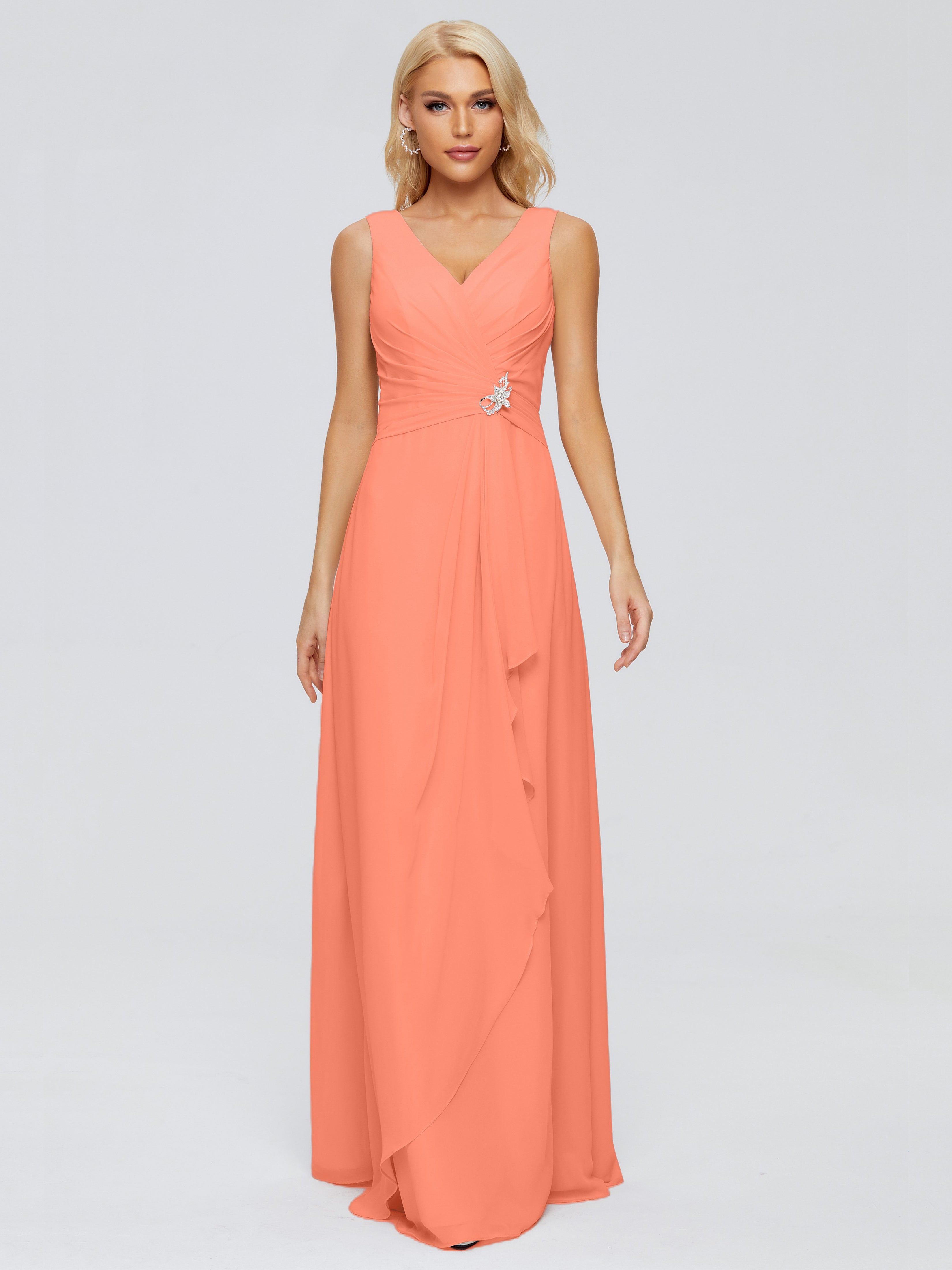 Robes De Demoiselle D'Honneur Coucher De Soleil Fourreau Col V Sans Manche Mousseline Robes Demoiselle D'Honneur
