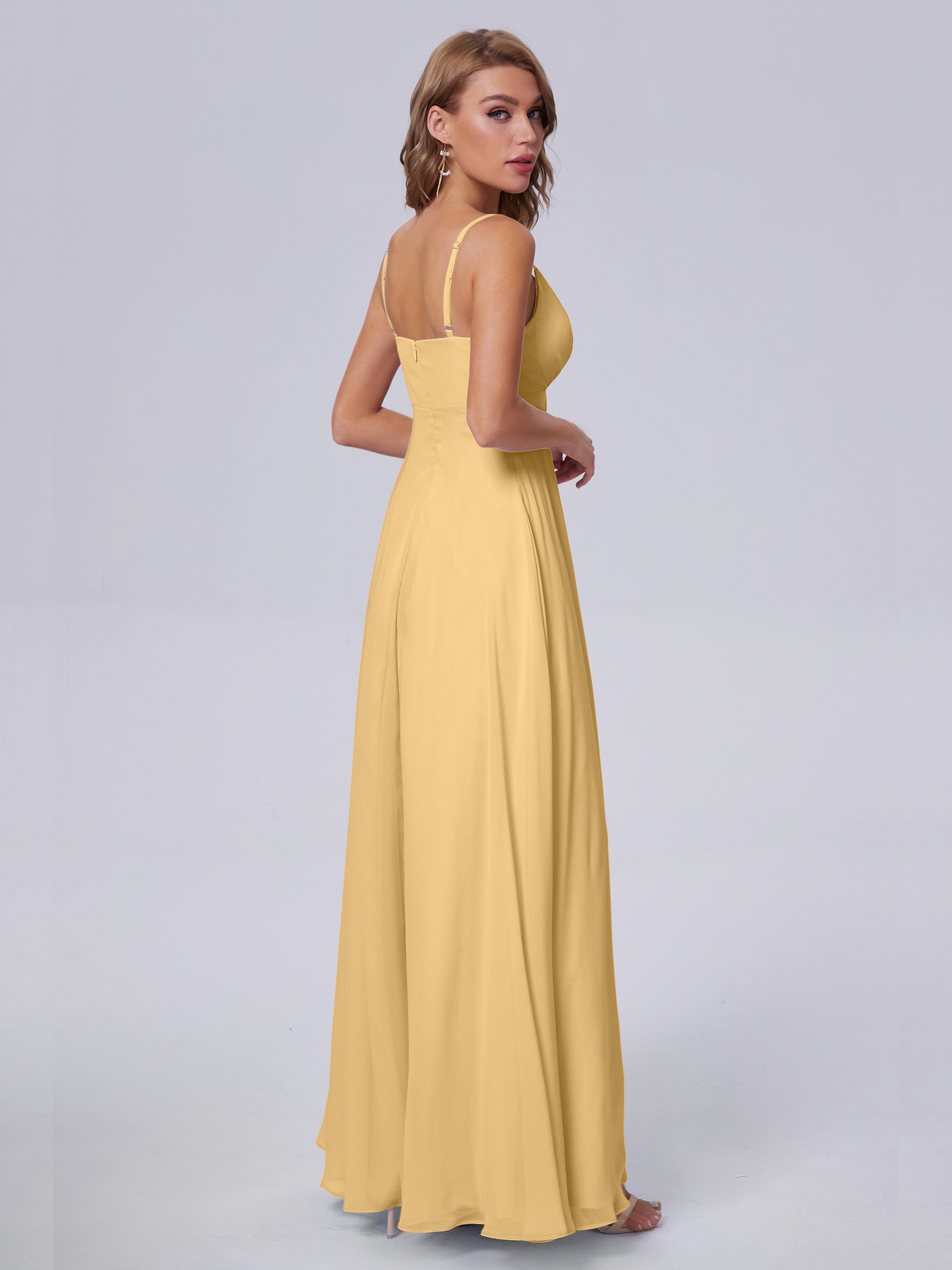 Robes De Demoiselle D'Honneur Élégantes En Or Classique Bretelles Spaghetti Mousseline Robes Demoiselle D'Honneur