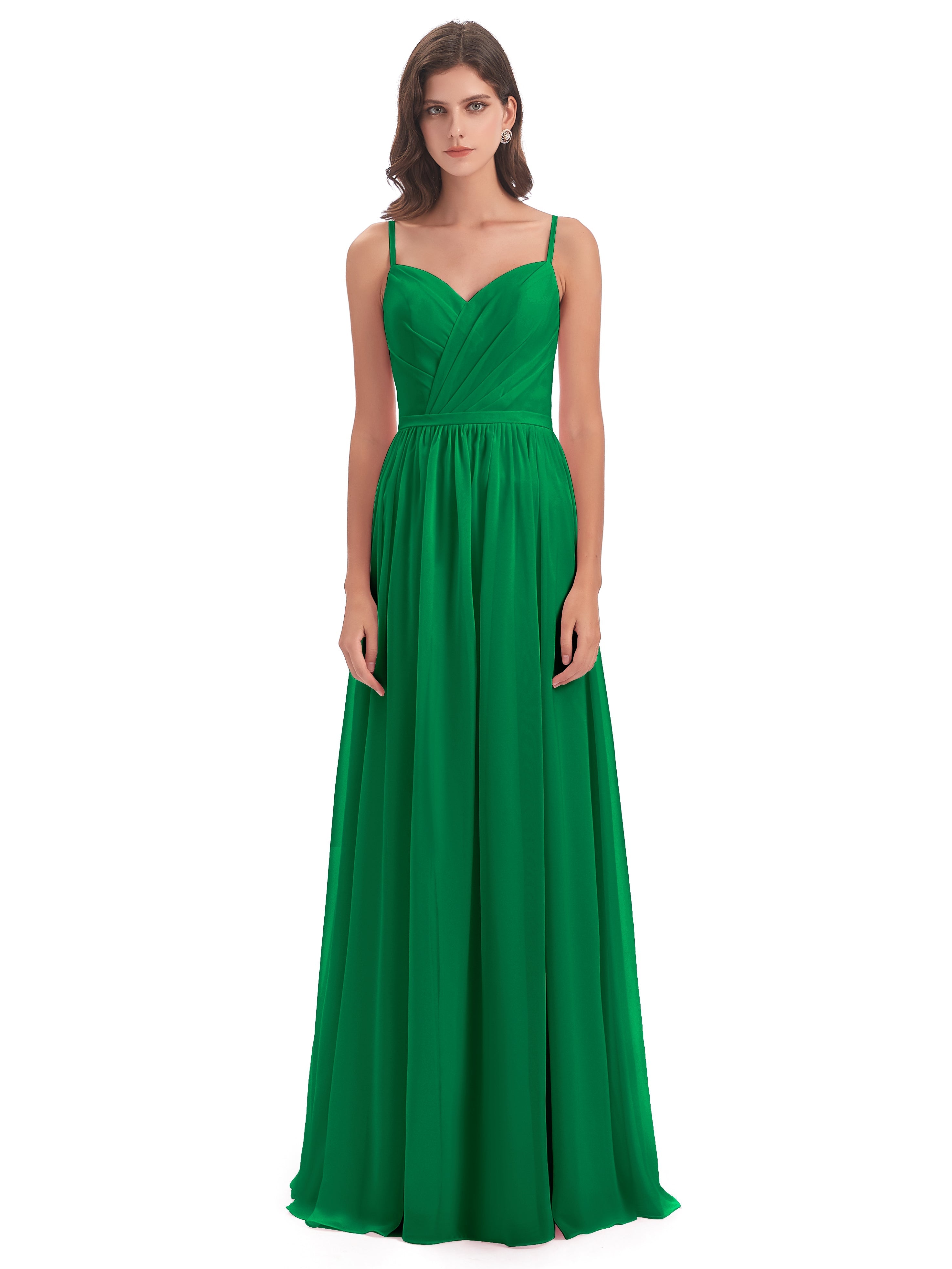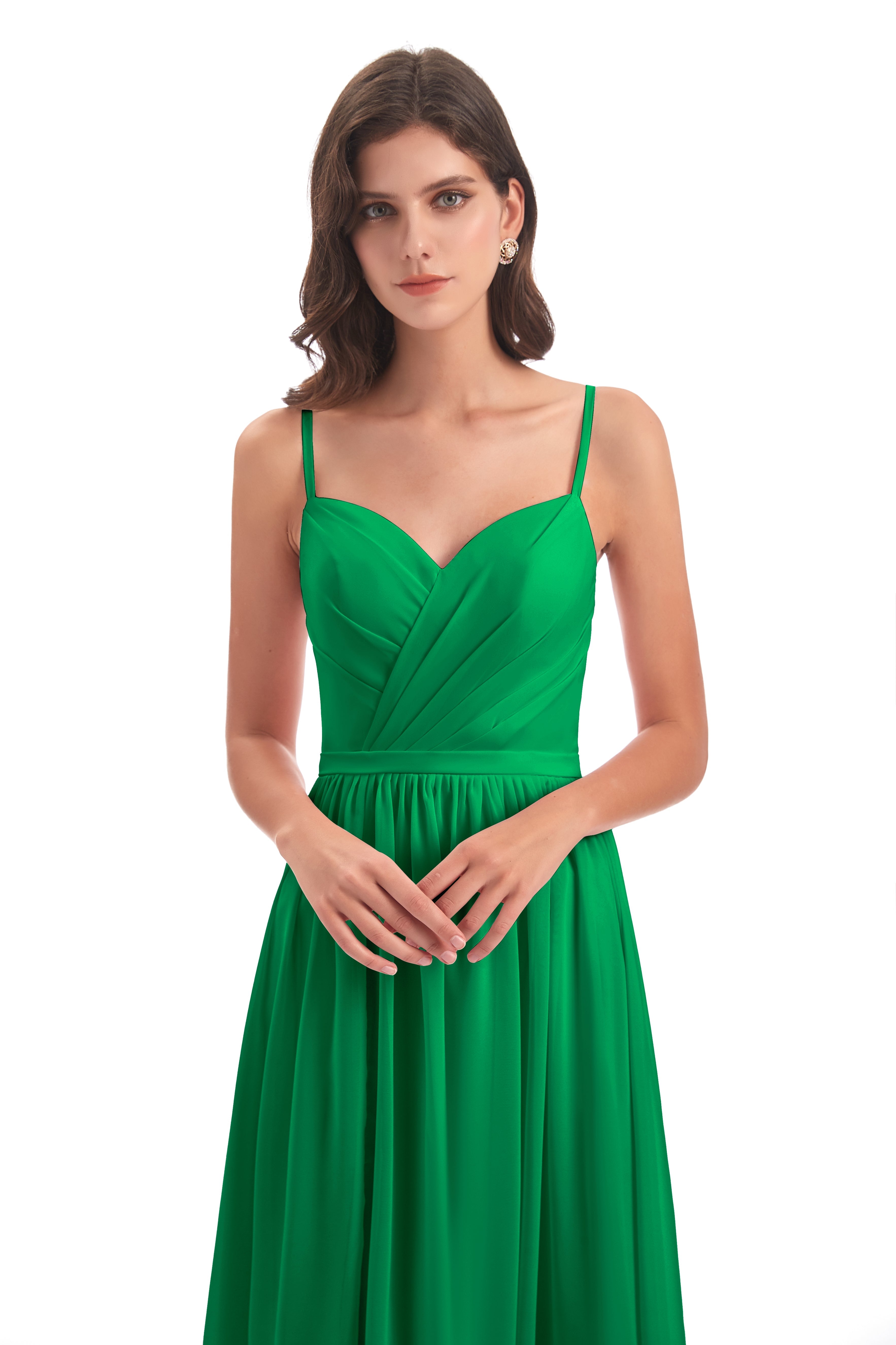 Robes De Demoiselle D'Honneur Émeraude Dos Ouvert Fendue Mousseline Robes Demoiselle D'Honneur