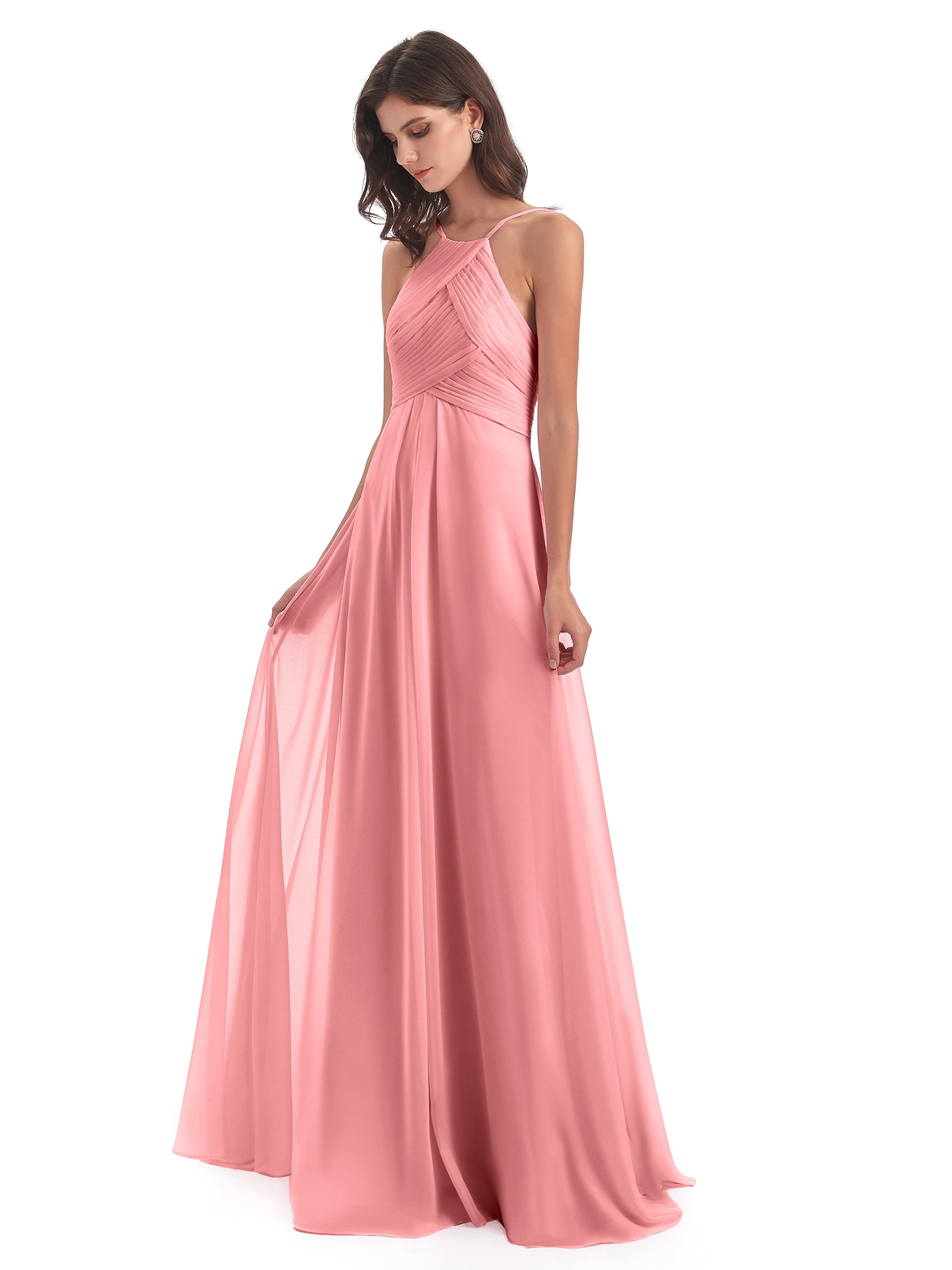 Robes De Demoiselle D'Honneur En Flamant Licou Dos Ouvert Mousseline Robes Demoiselle D'Honneur