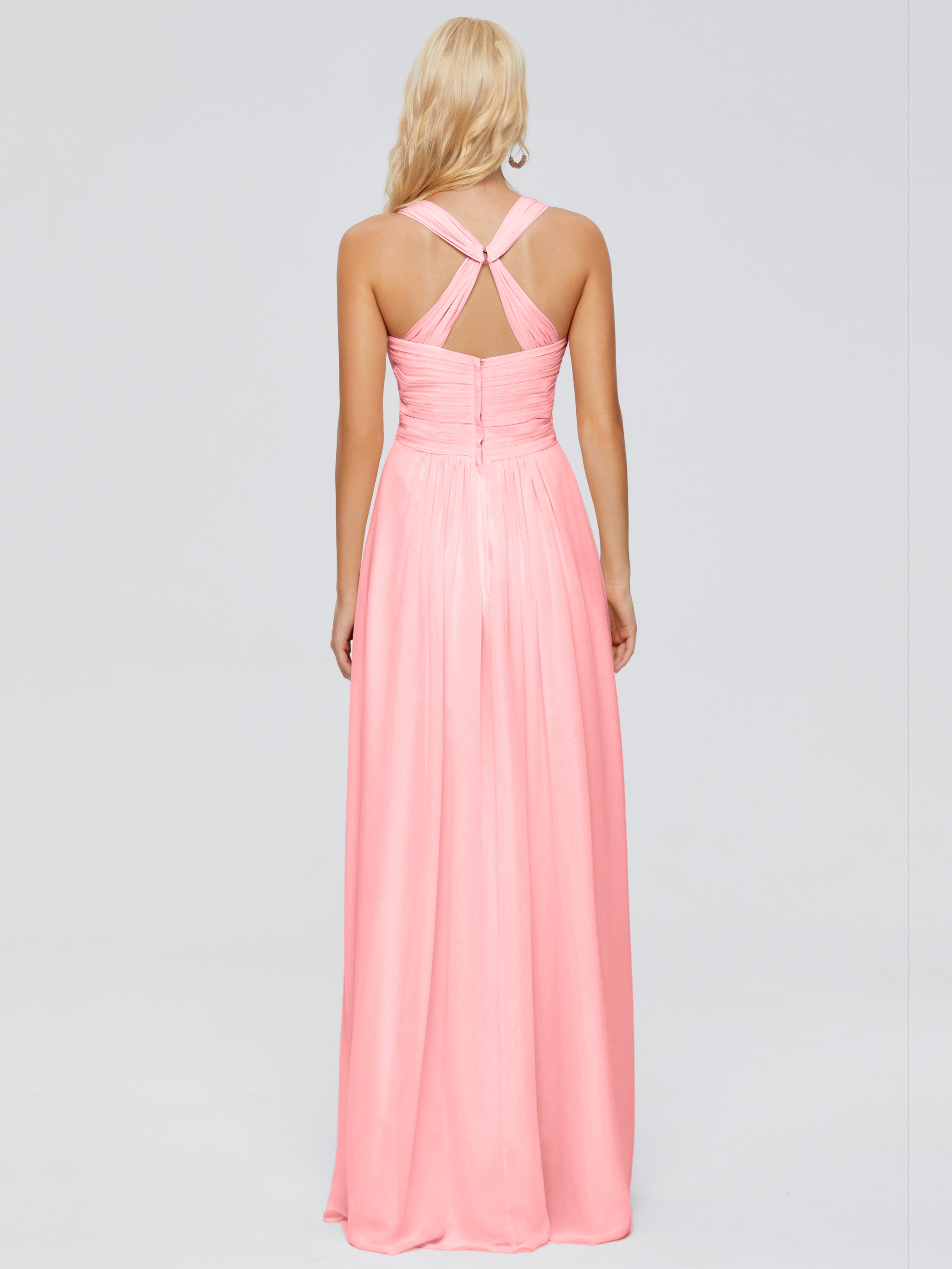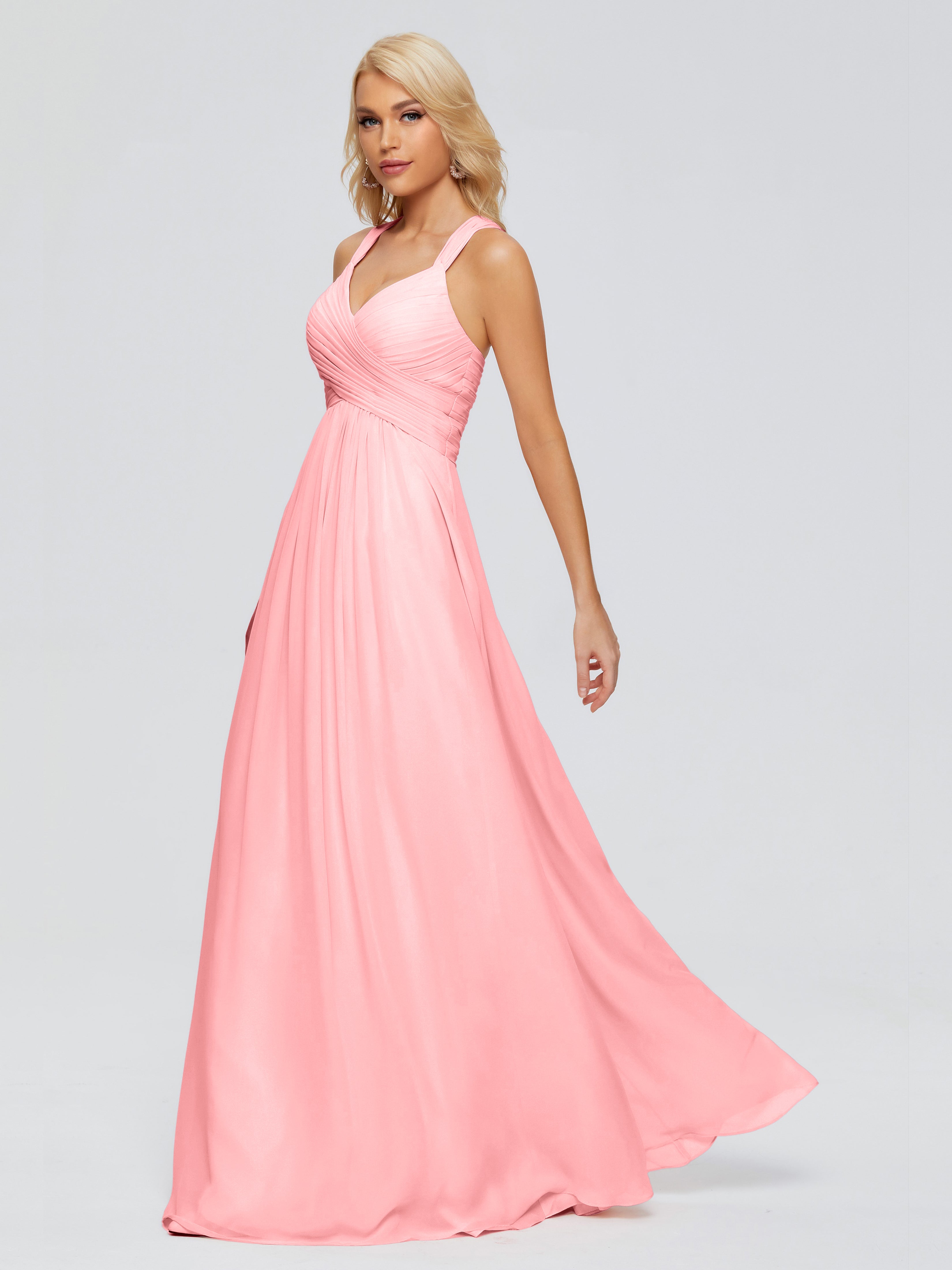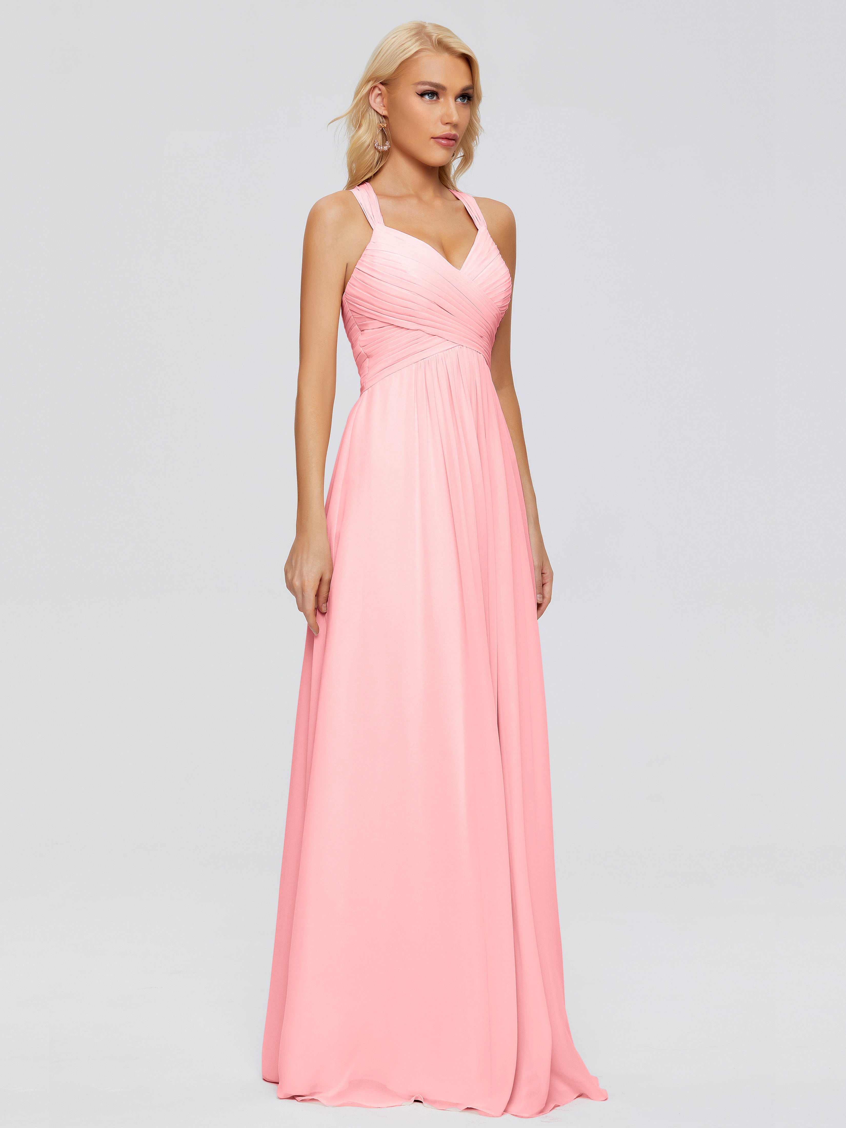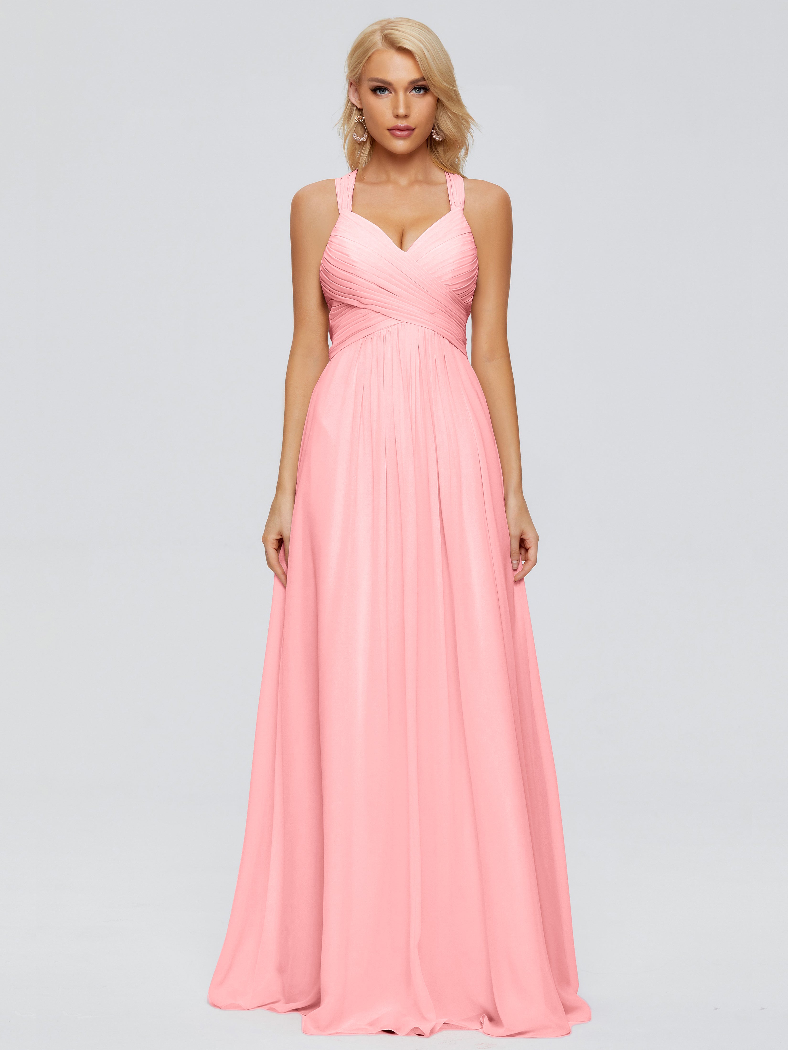 Robes De Demoiselle D'Honneur En Flamant Trapèze Bretelles Croisées Mousseline Robes Demoiselle D'Honneur