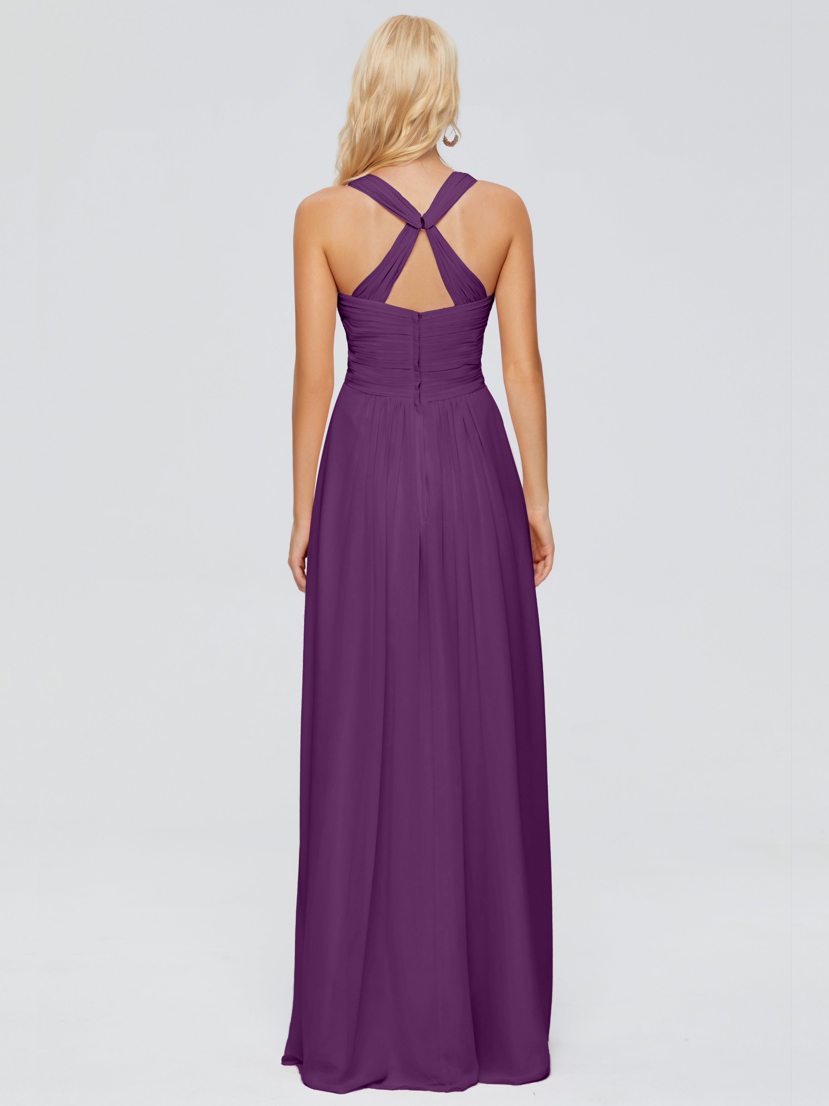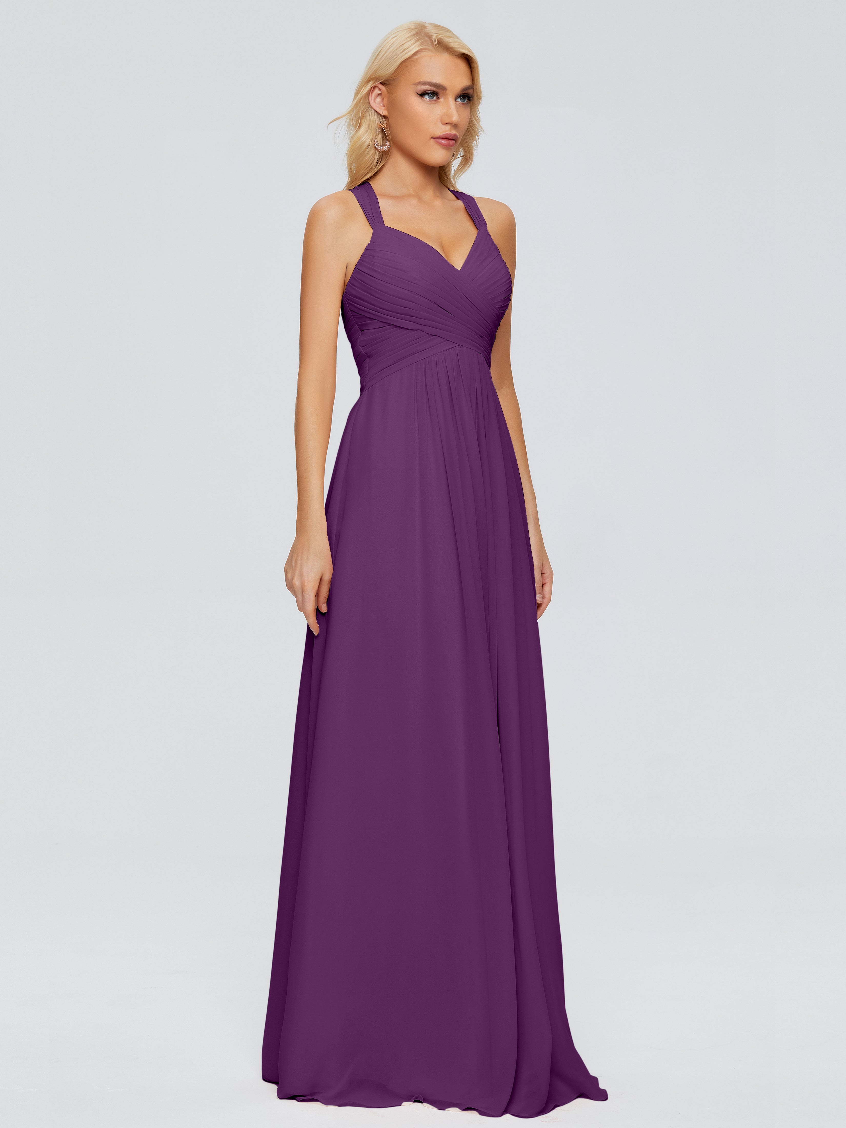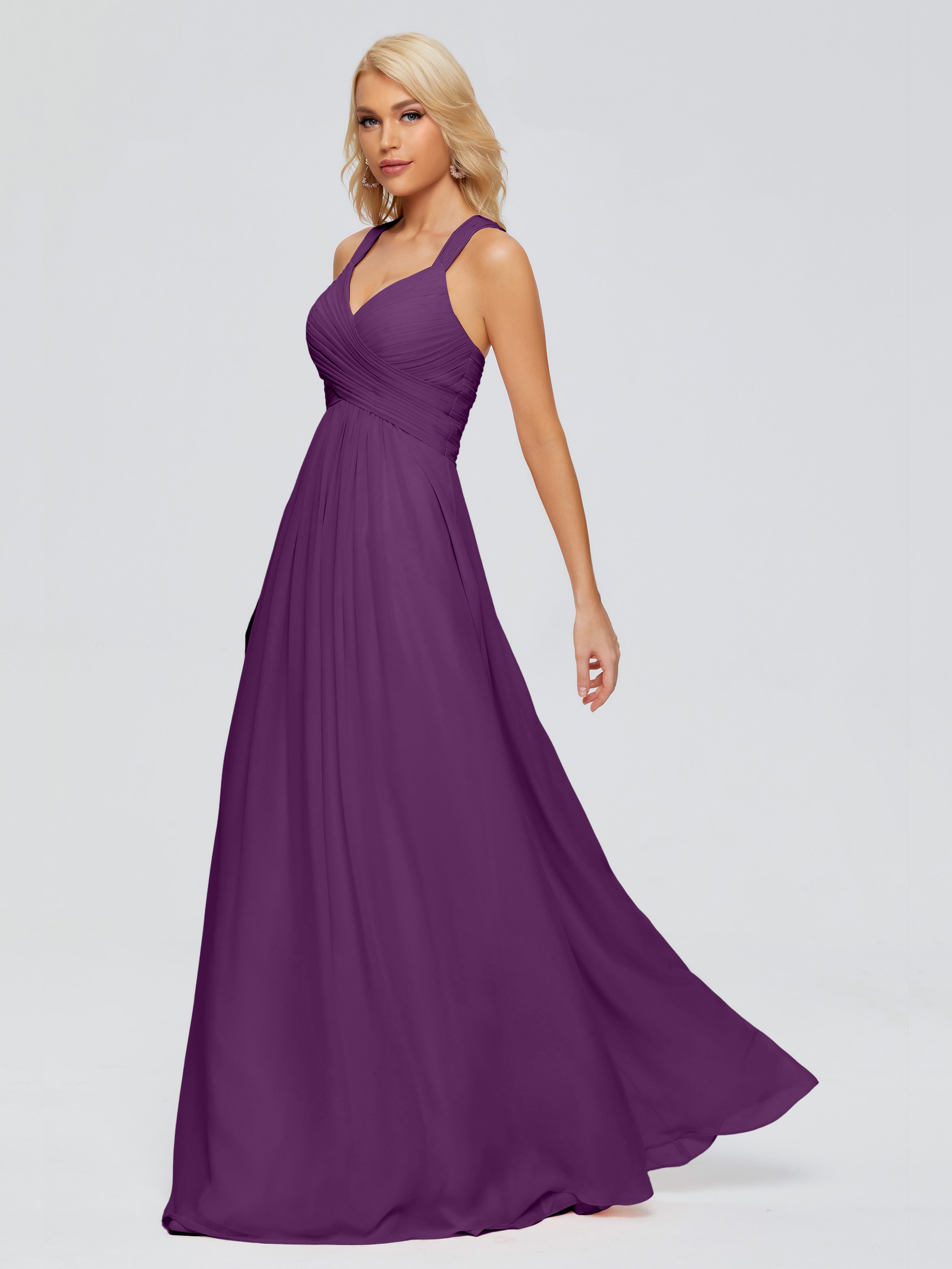 Robes De Demoiselle D'Honneur En Raisin Trapèze Bretelles Croisées Mousseline Robes Demoiselle D'Honneur