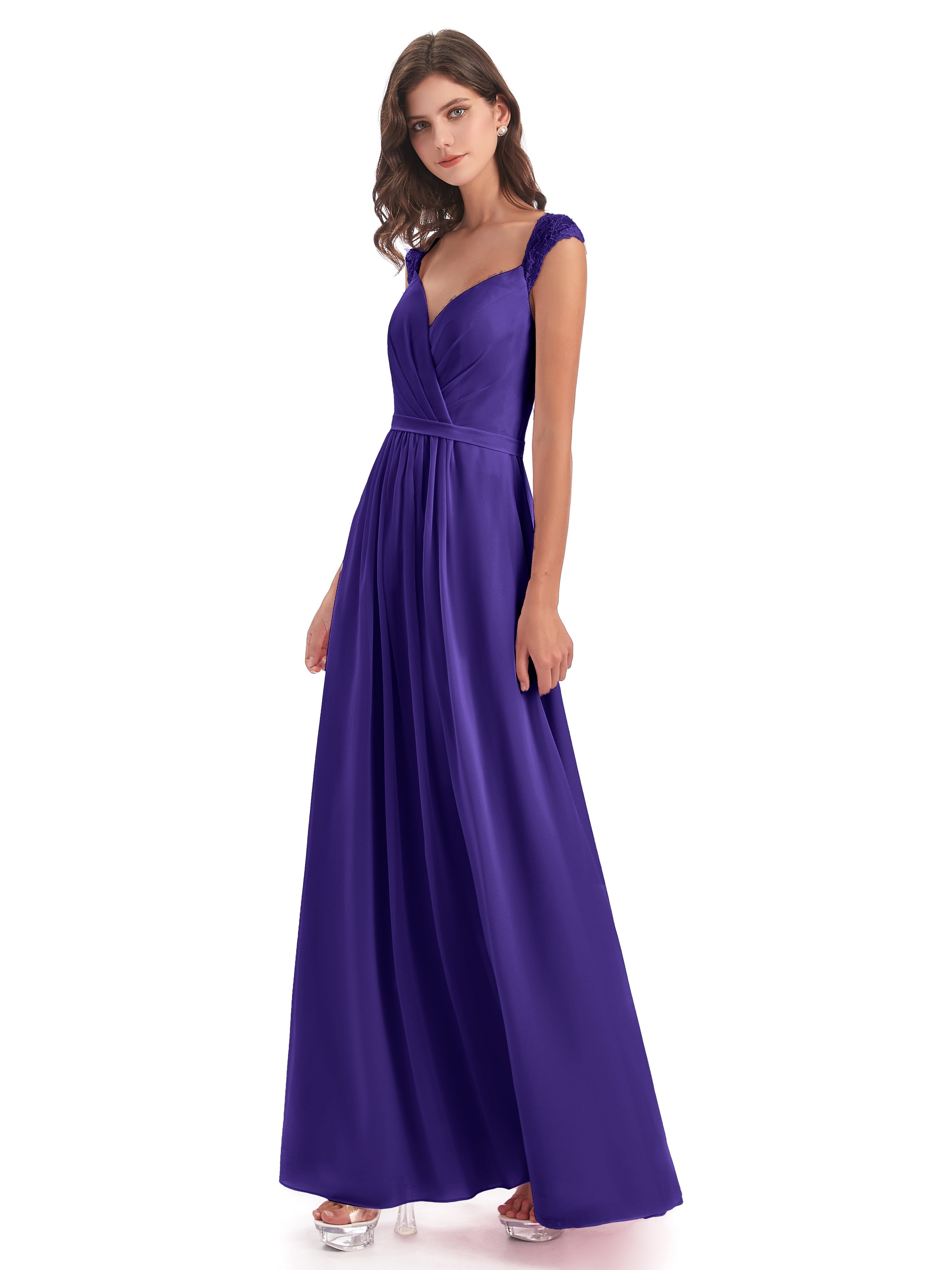 Robes De Demoiselle D'Honneur En Régence Mancherons Dos Ouvert Mousseline Robes Demoiselle D'Honneur