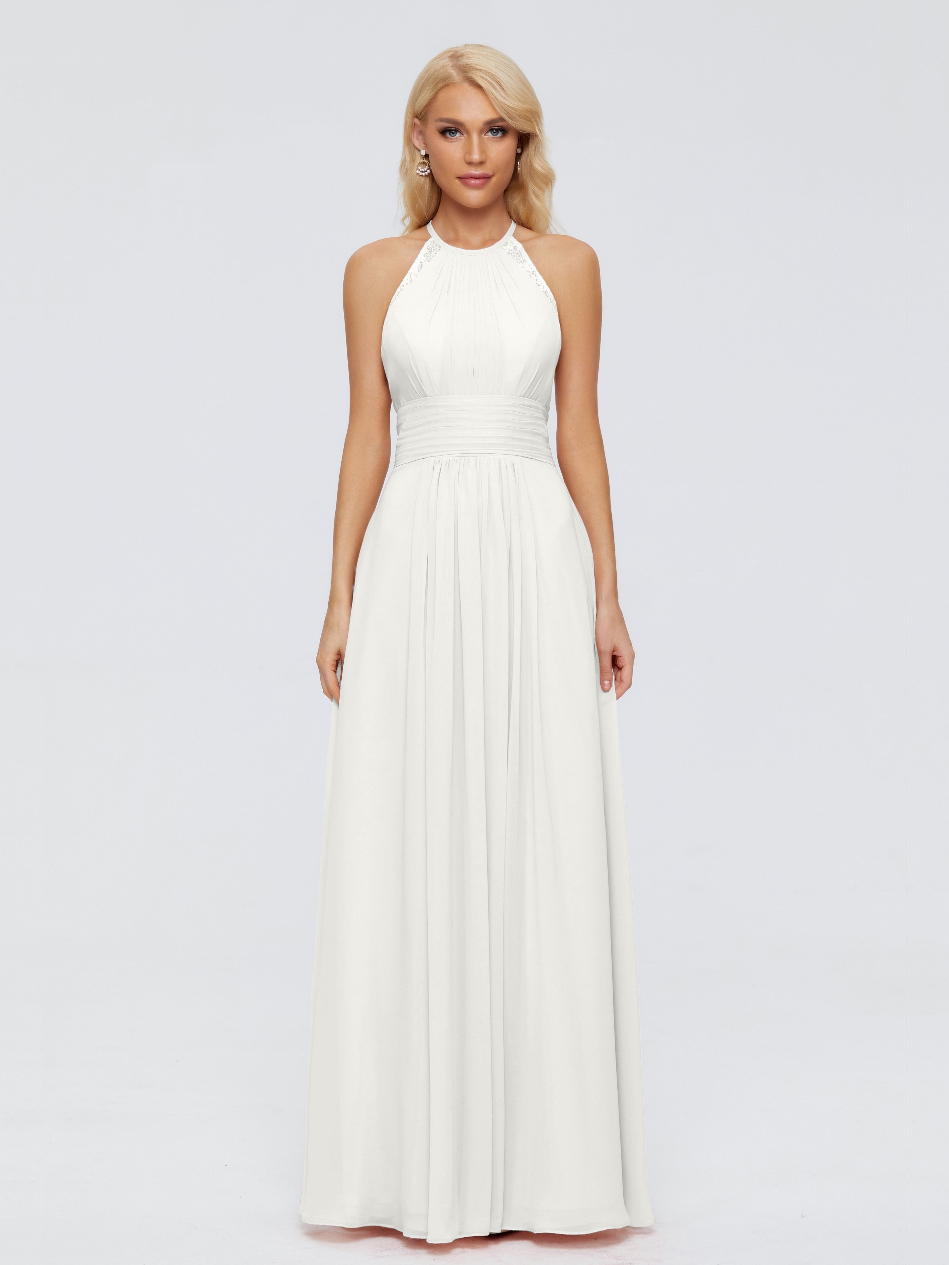 Robes De Demoiselle D'Honneur Ivoire Trapèze Licou Dentelle Mousseline Robes Demoiselle D'Honneur