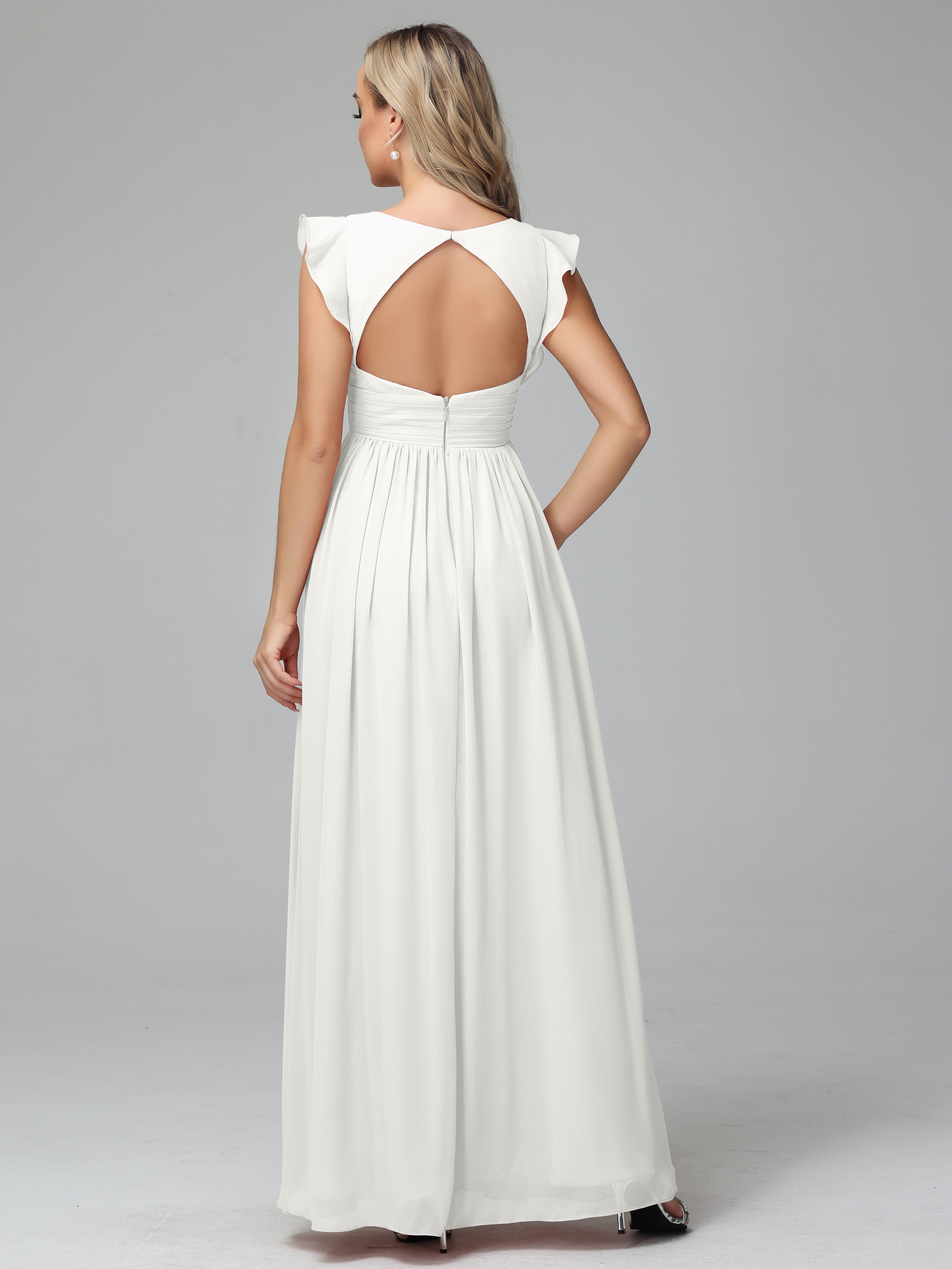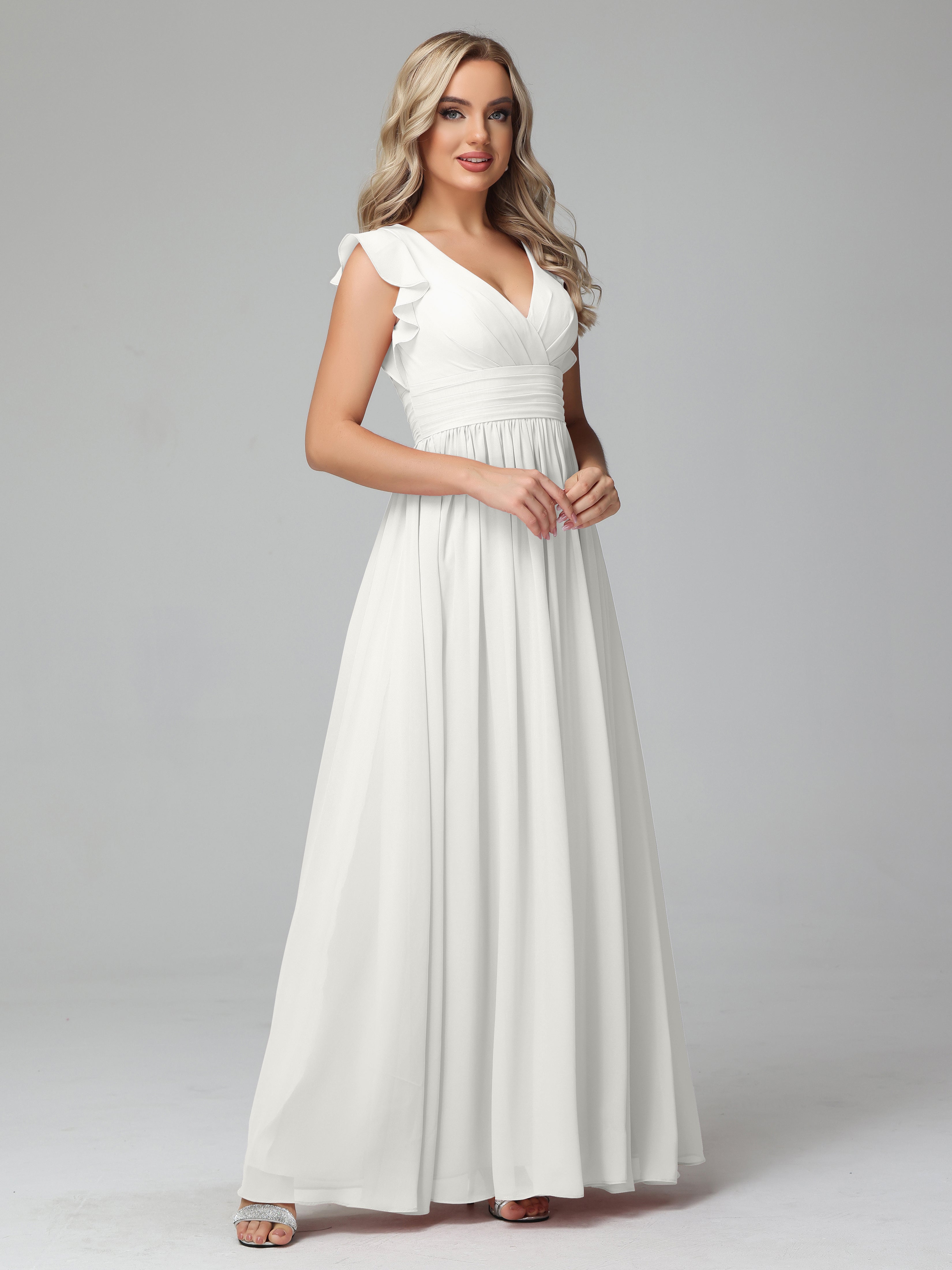 Robes De Demoiselle D'Honneur Ivoire Trapèze Mousseline Longue Robes Demoiselle D'Honneur