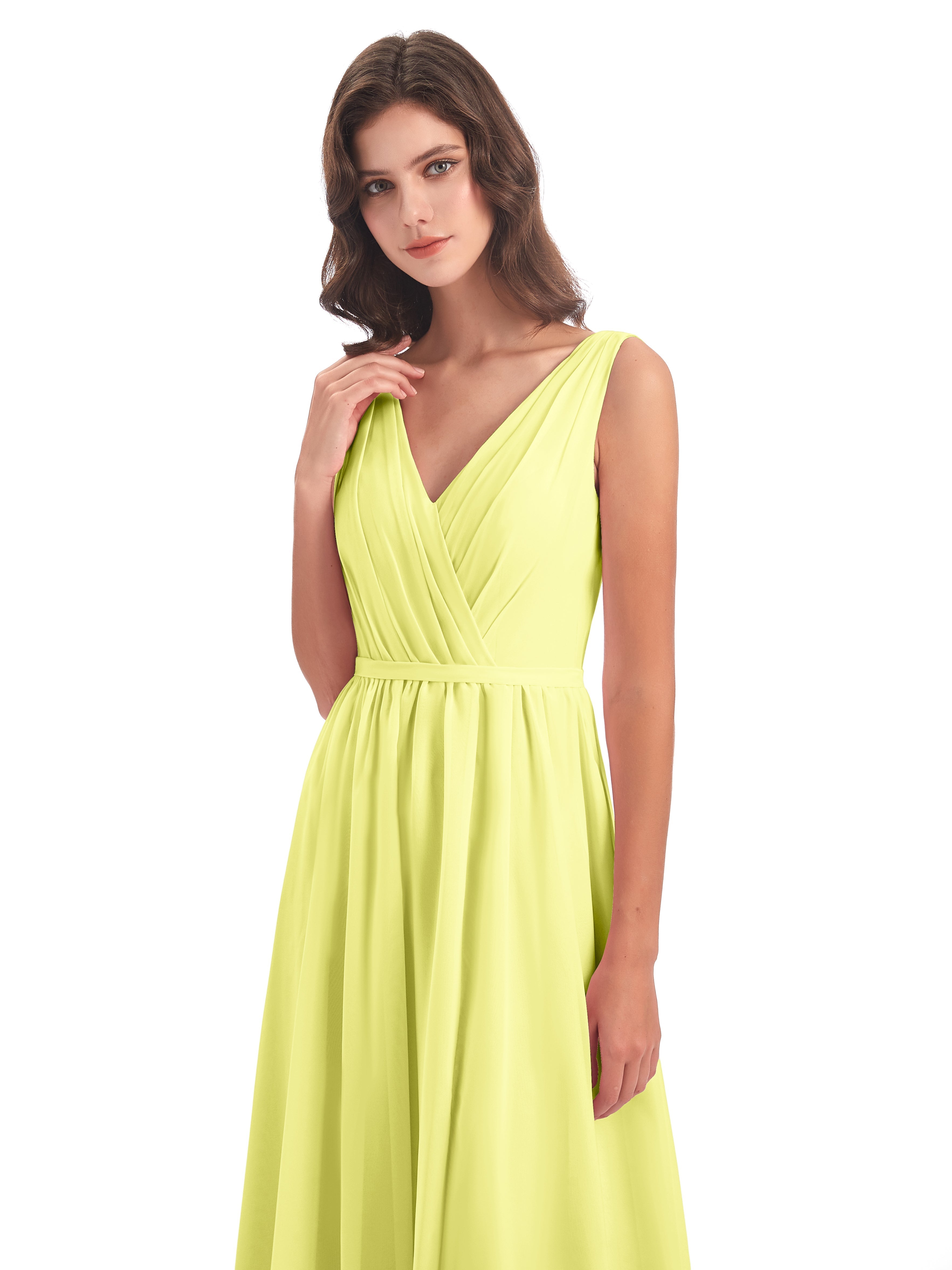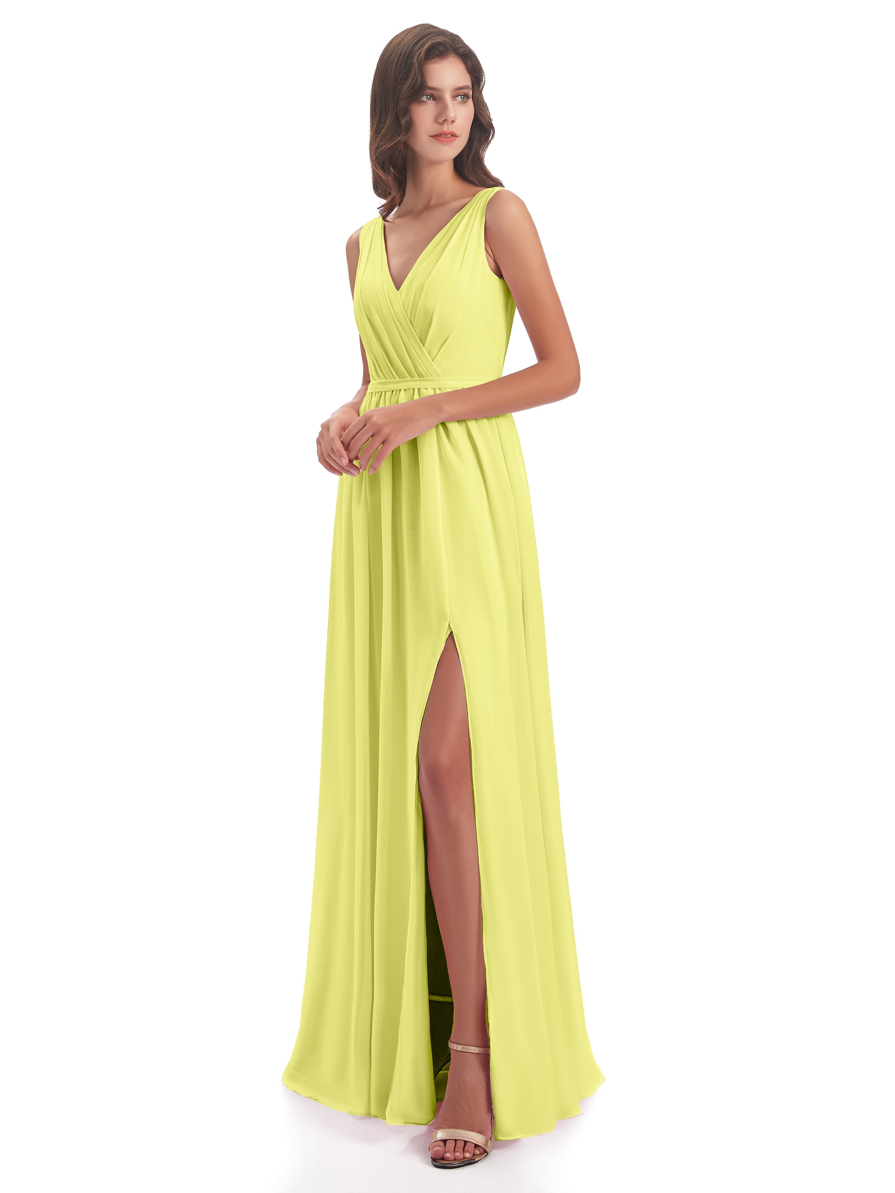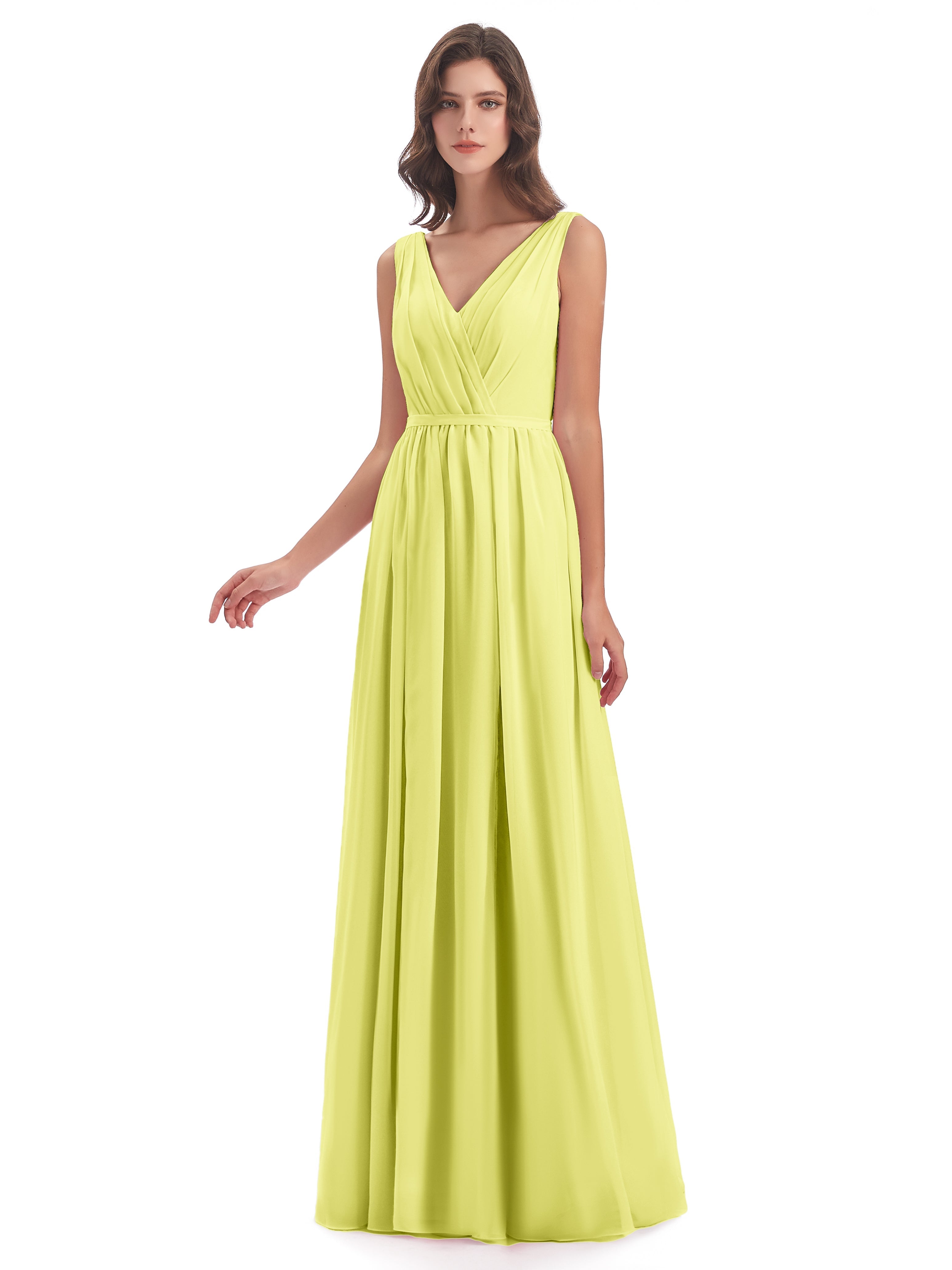 Robes De Demoiselle D'Honneur Jonquille Fourreau/Colonne Col V Mousseline Robes Demoiselle D'Honneur