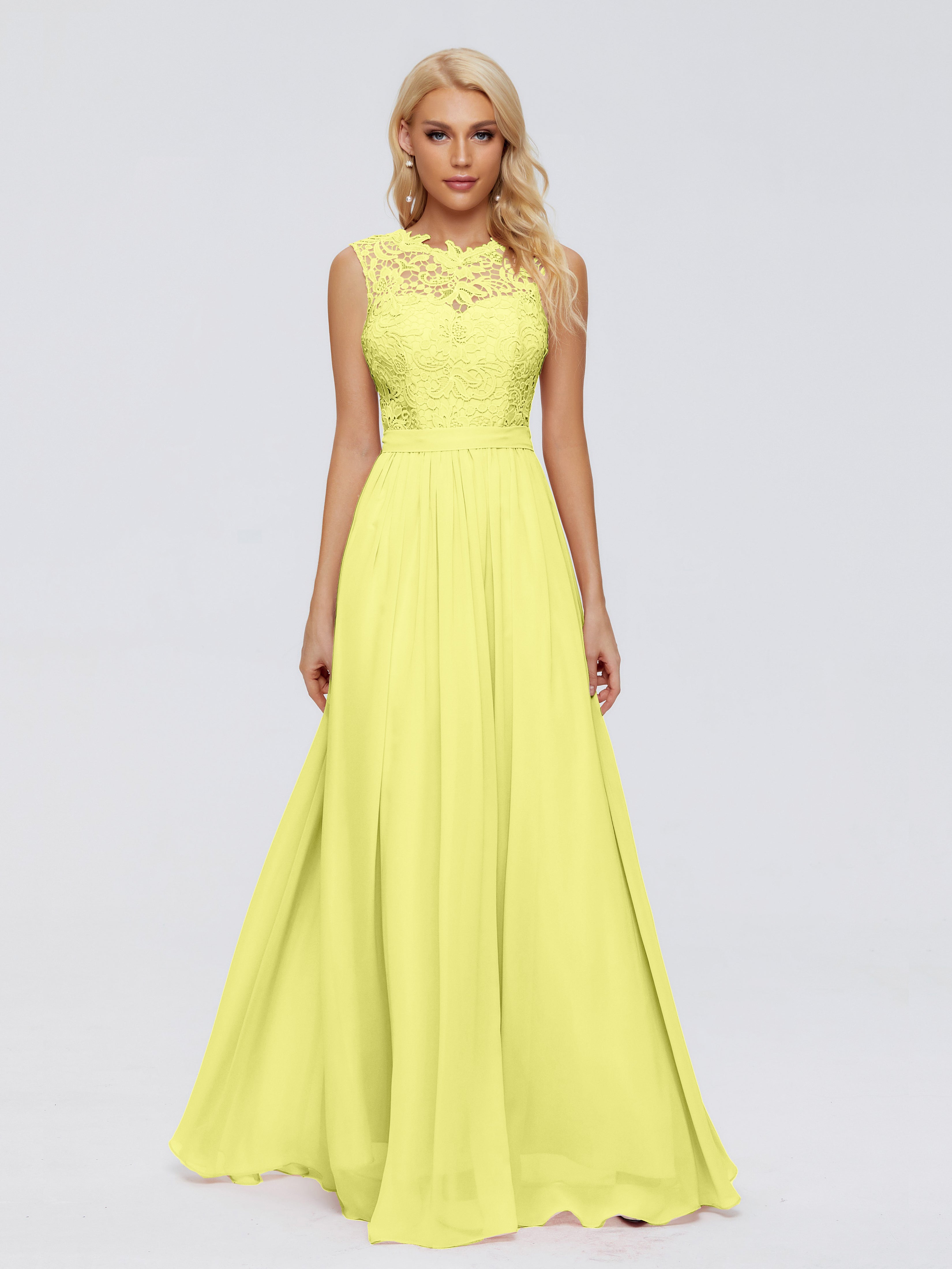 Robes De Demoiselle D'Honneur Jonquille Trapèze Bateau Mousseline Robes Demoiselle D'Honneur