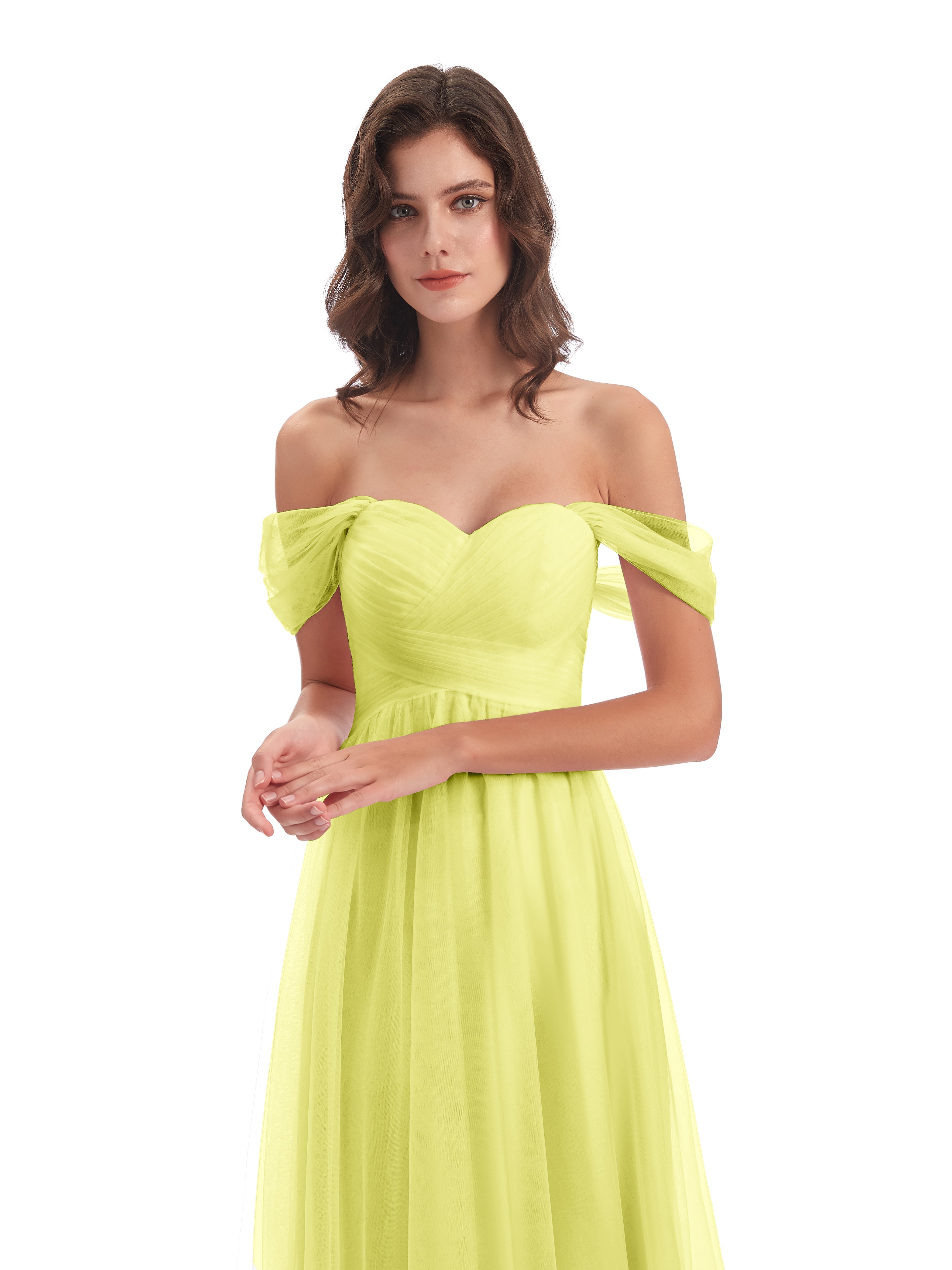 Robes De Demoiselle D'Honneur Jonquille Trapèze Hors-La-Épaule Tulle Longue Robes Demoiselle D'Honneur