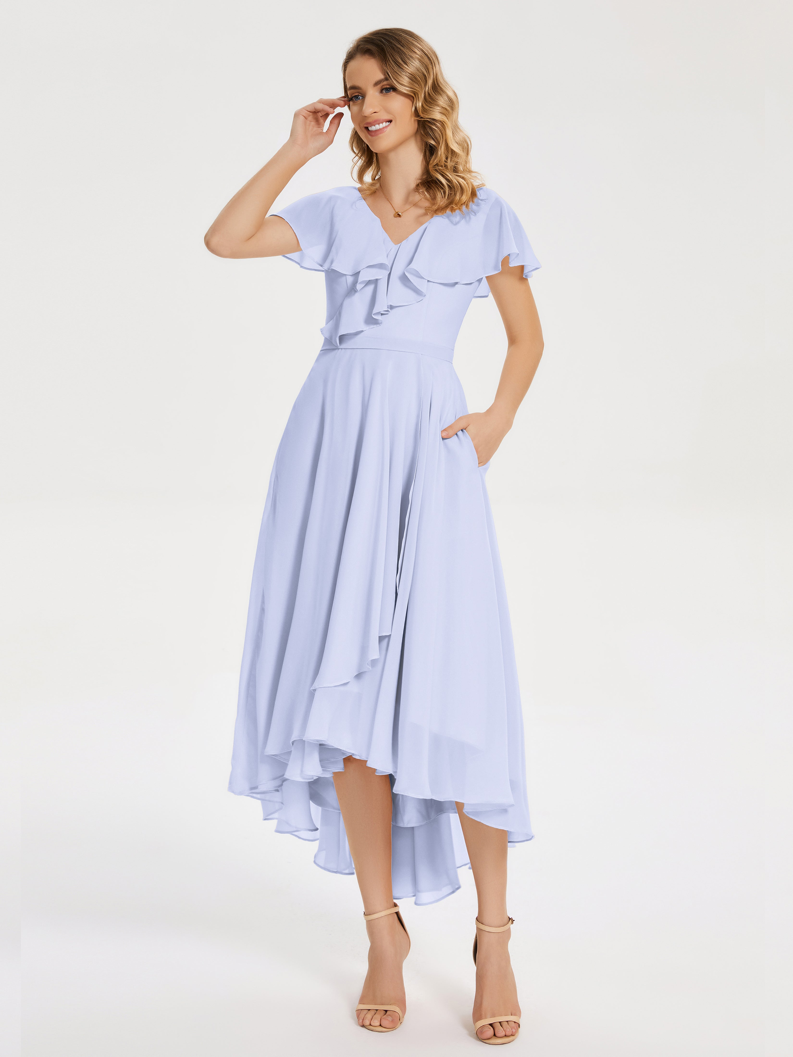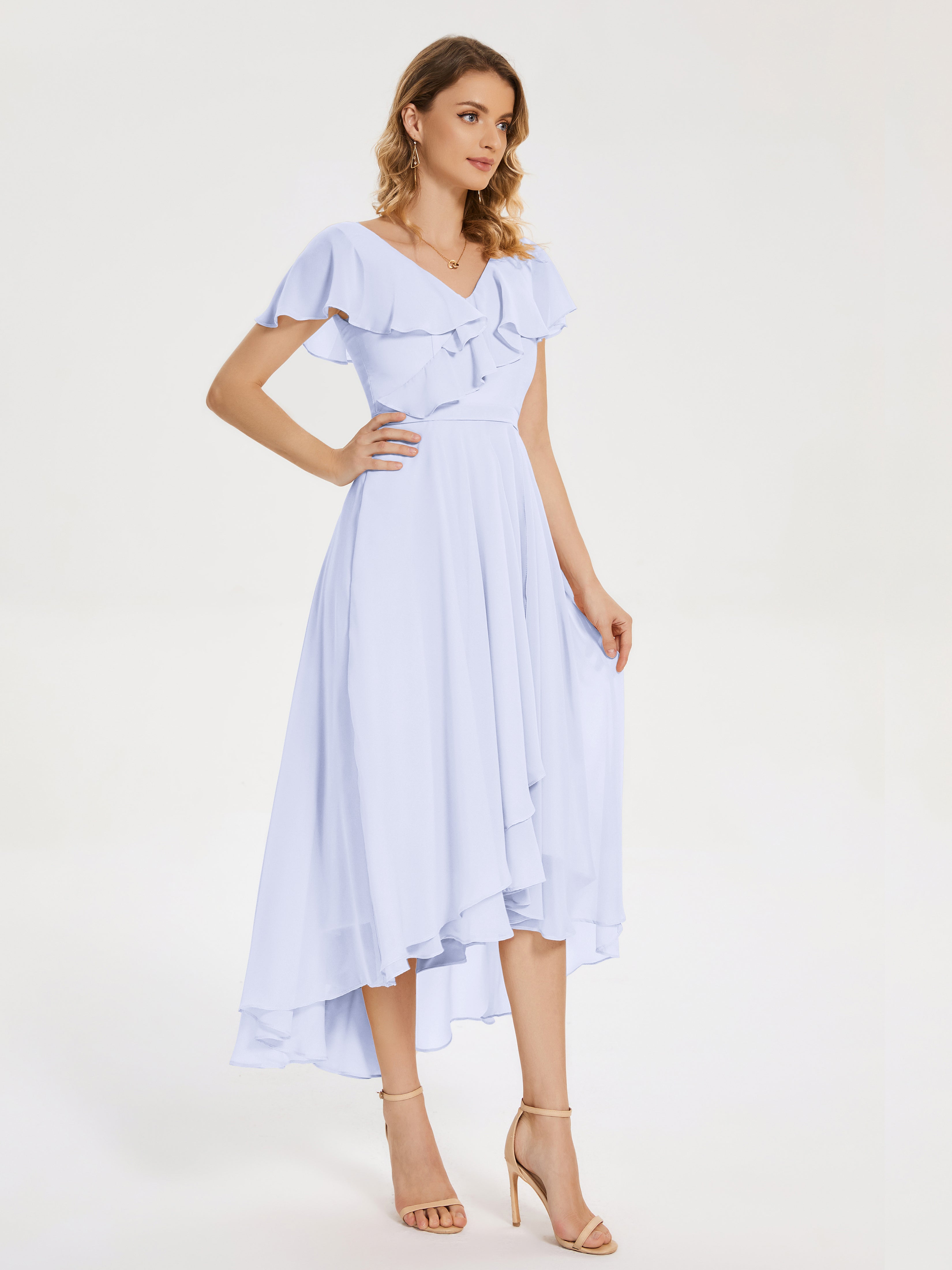 Robes De Demoiselle D'Honneur Lavande Col V Asymétrique Robes Demoiselle D'Honneur À Volants