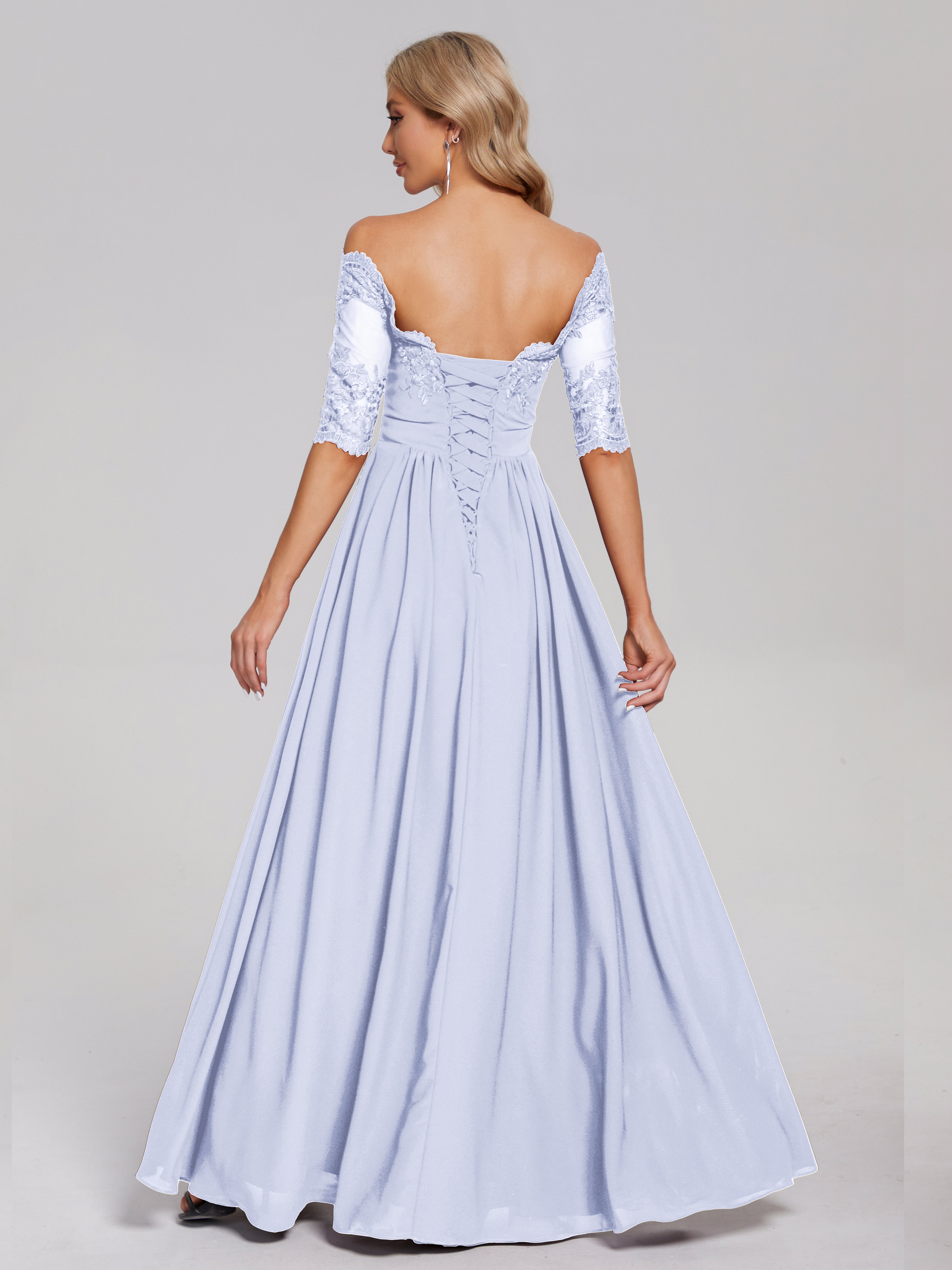 Robes De Demoiselle D'Honneur Lavande Hors-La-Épaule Demi Manches Dentelle/Mousseline Robes Demoiselle D'Honneur