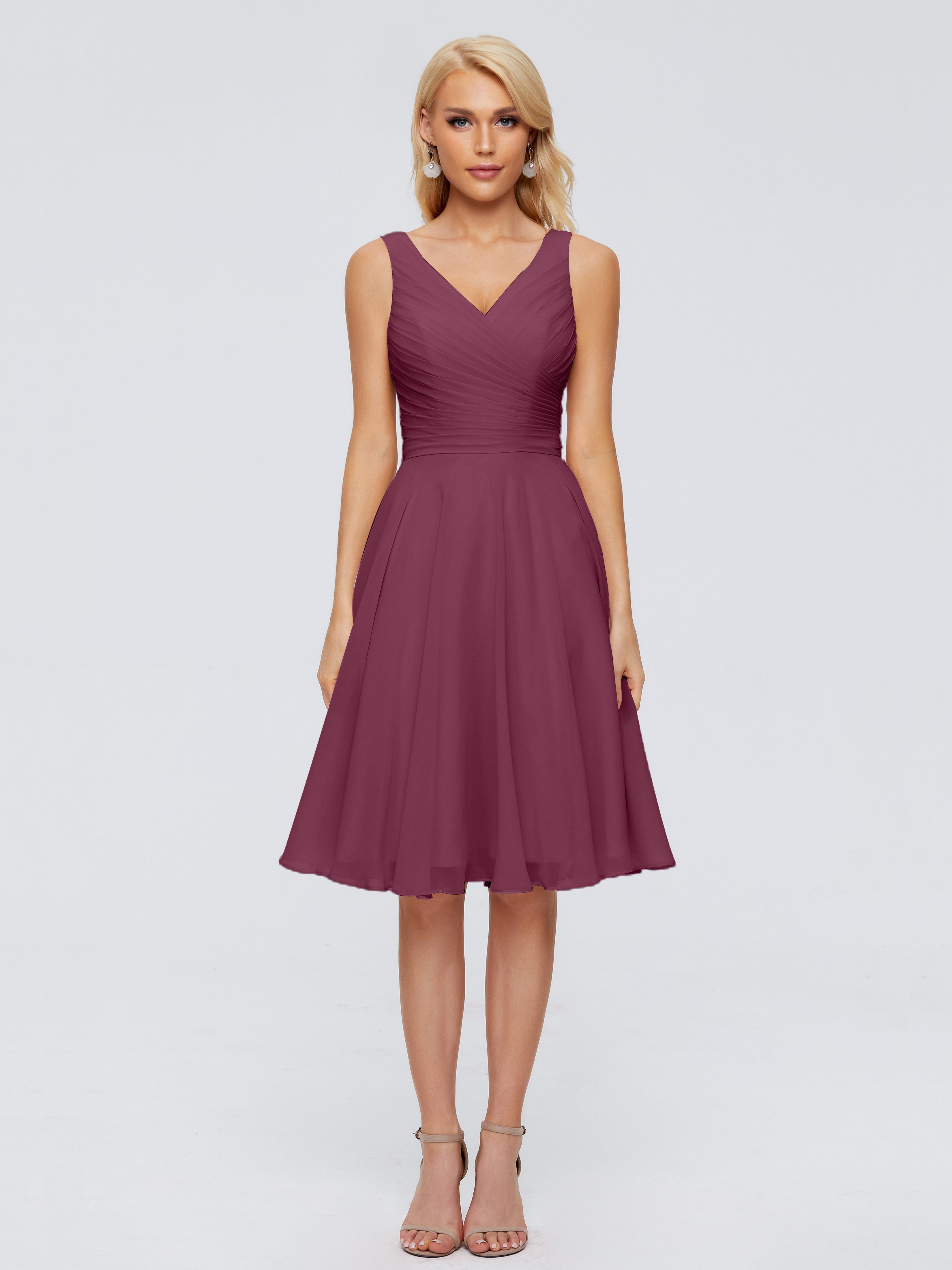 Robes De Demoiselle D'Honneur Mûre Col V Longueur Genou Mousseline Robes Demoiselle D'Honneur
