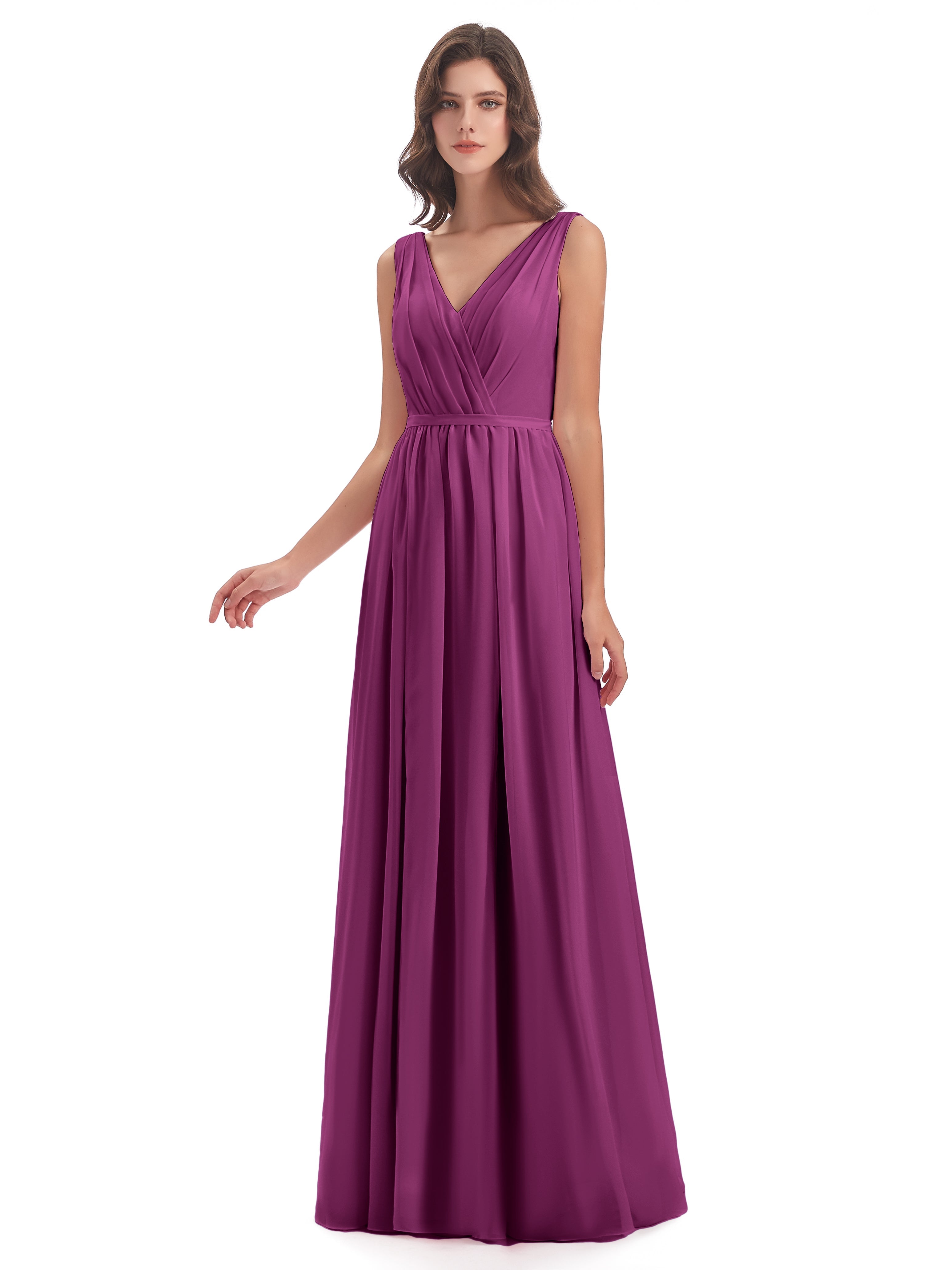 Robes De Demoiselle D'Honneur Orchidée Fourreau/Colonne Col V Mousseline Robes Demoiselle D'Honneur