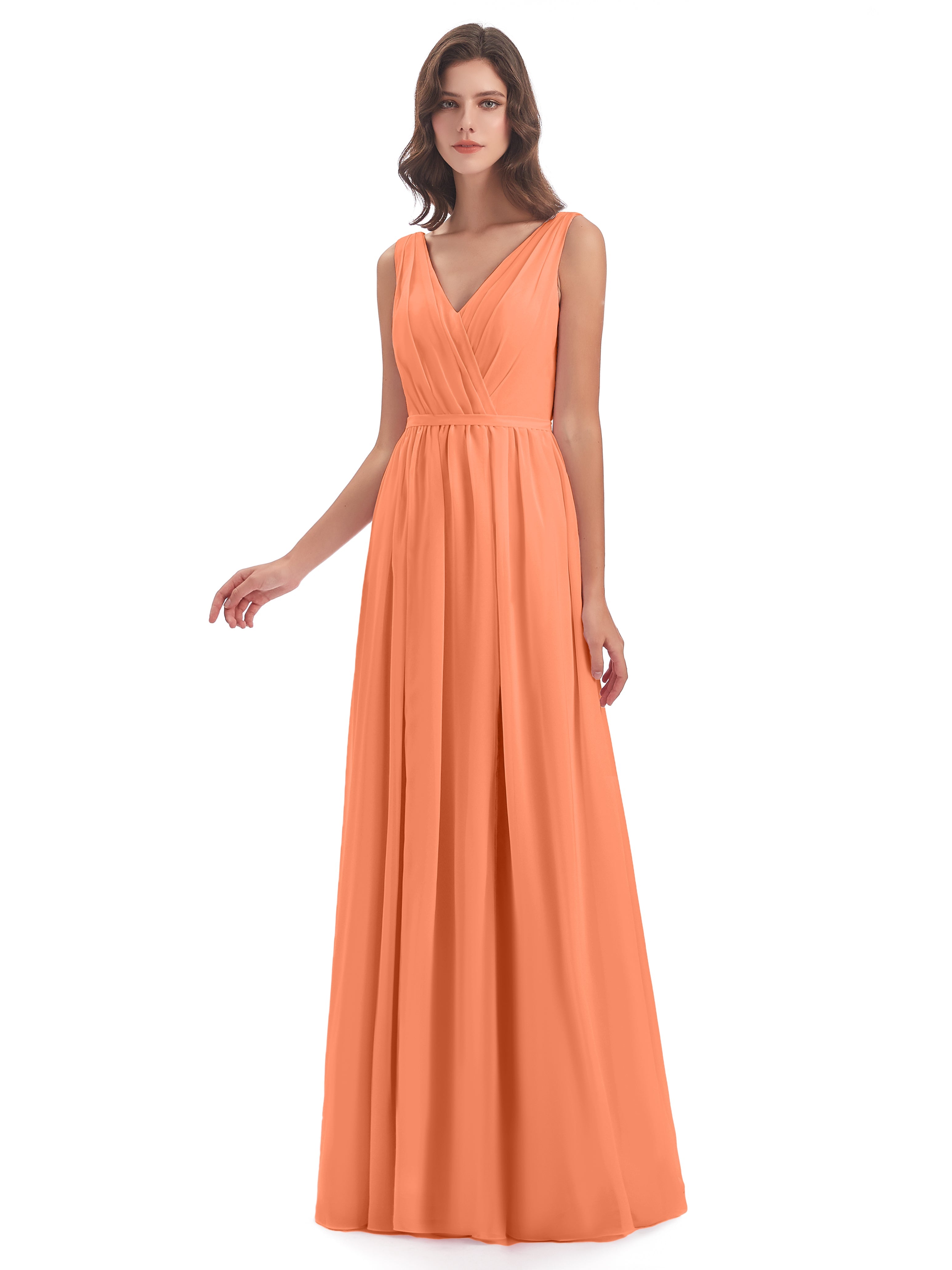 Robes De Demoiselle D'Honneur Papaye Fourreau/Colonne Col V Mousseline Robes Demoiselle D'Honneur