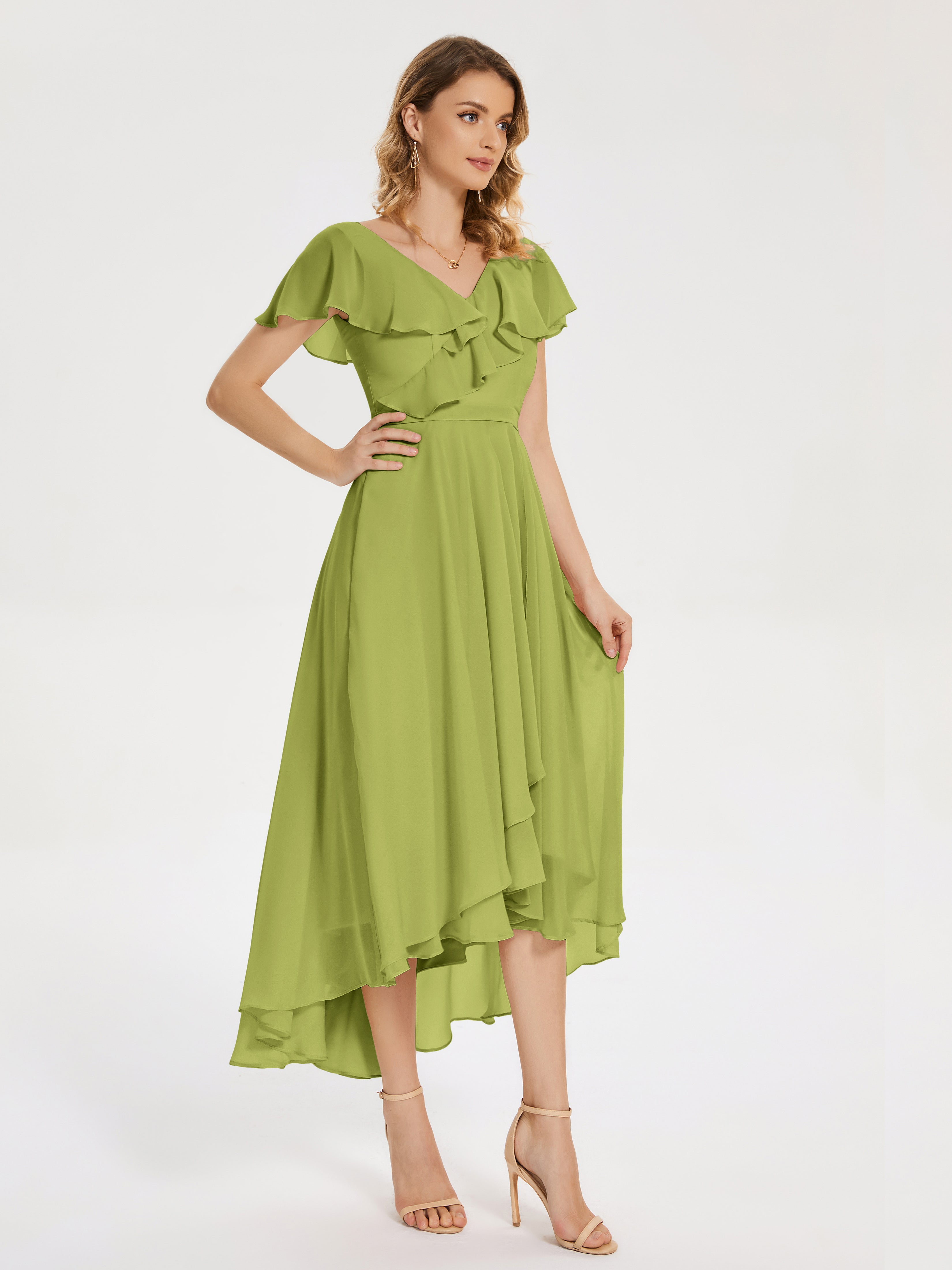 Robes De Demoiselle D'Honneur Trèfle Col V Asymétrique Robes Demoiselle D'Honneur À Volants